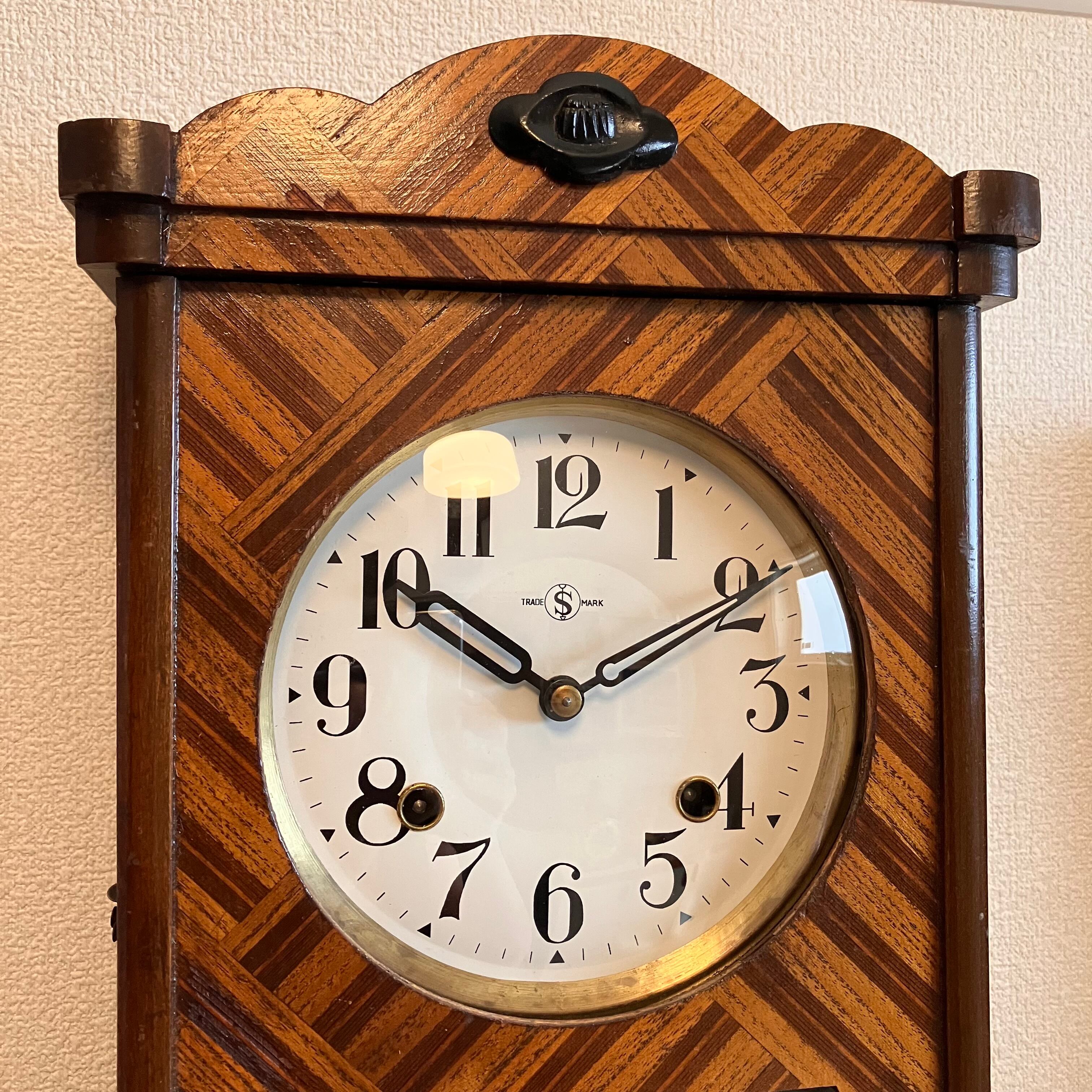 昭和初期 佐藤時計製高級寄木張りステンド窓掛時計オーバーホール済稼働品です。