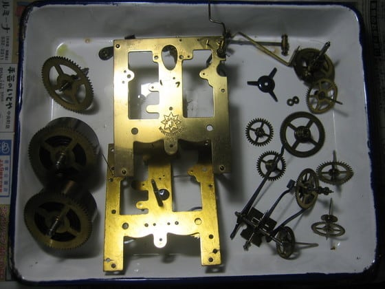 ムーブメントを固定するネジが劣化していたため、金属パテで補修しています。稼働に影響はありません。