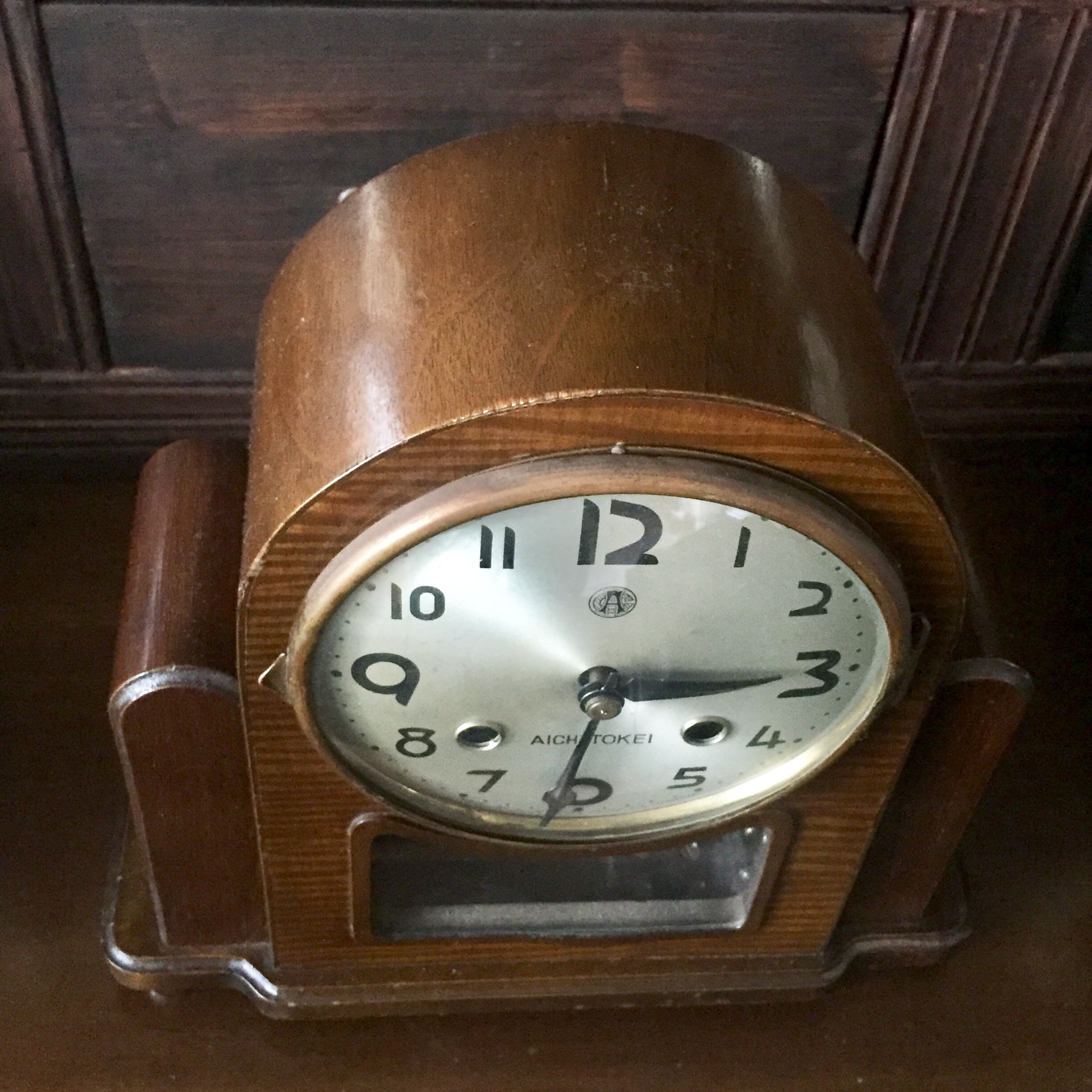 昭和レトロなアールデコ調 愛知時計製マントル時計 振り子式置時計 オーバーホール済稼働品です。