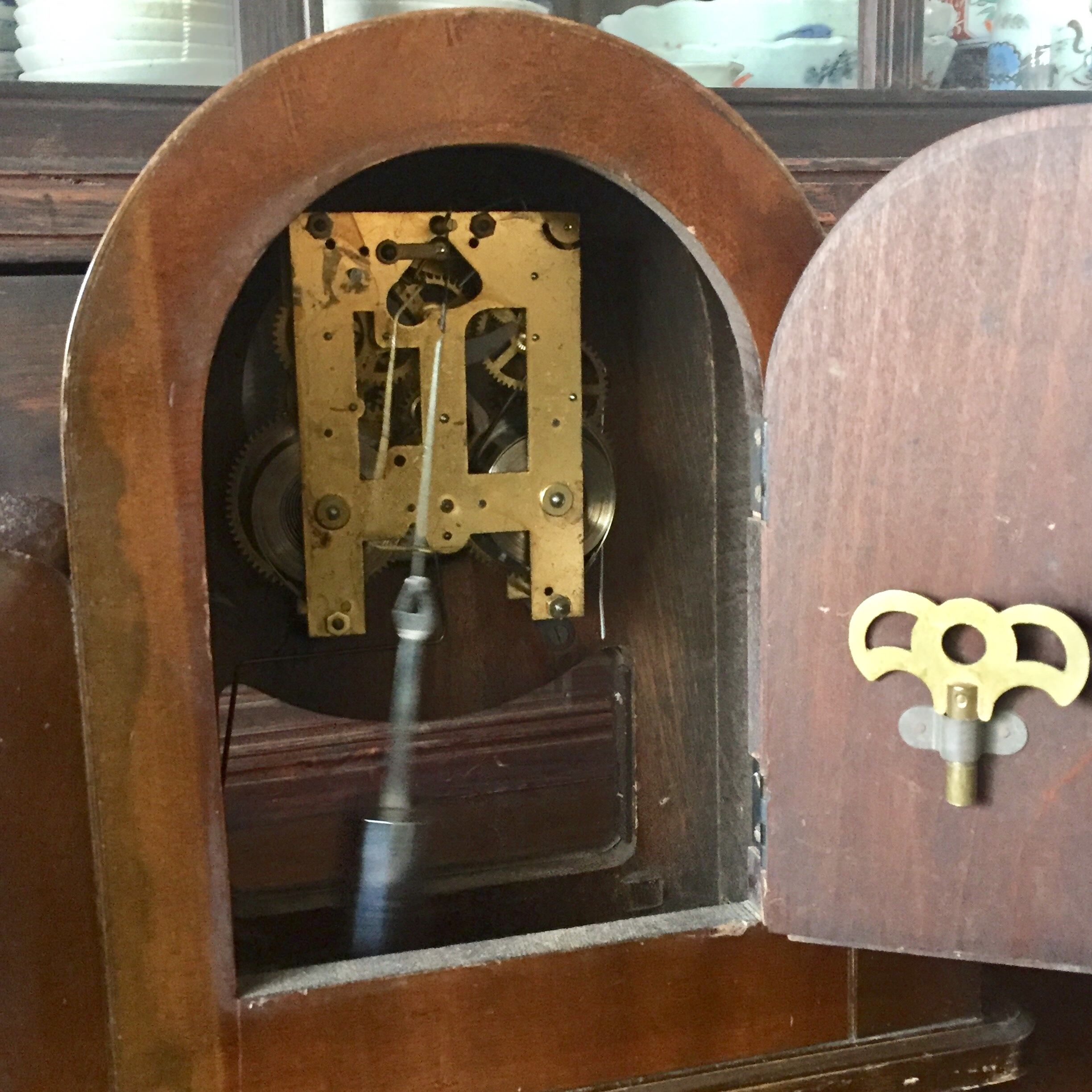 昭和30年頃のアールデコ調のマントル時計です。昔は暖炉の上においた時計をマントル時計と呼んでいたようです。