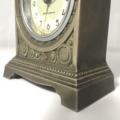 栄冠という名前の付けられたコメットの機械を使った、戦後の精工舎のアンチモニー合金製枠の頭丸目覚まし時計で、夜光ではないタイプです。アンチモニー枠のデザインは、向日葵の花がかわいいドーム型です。