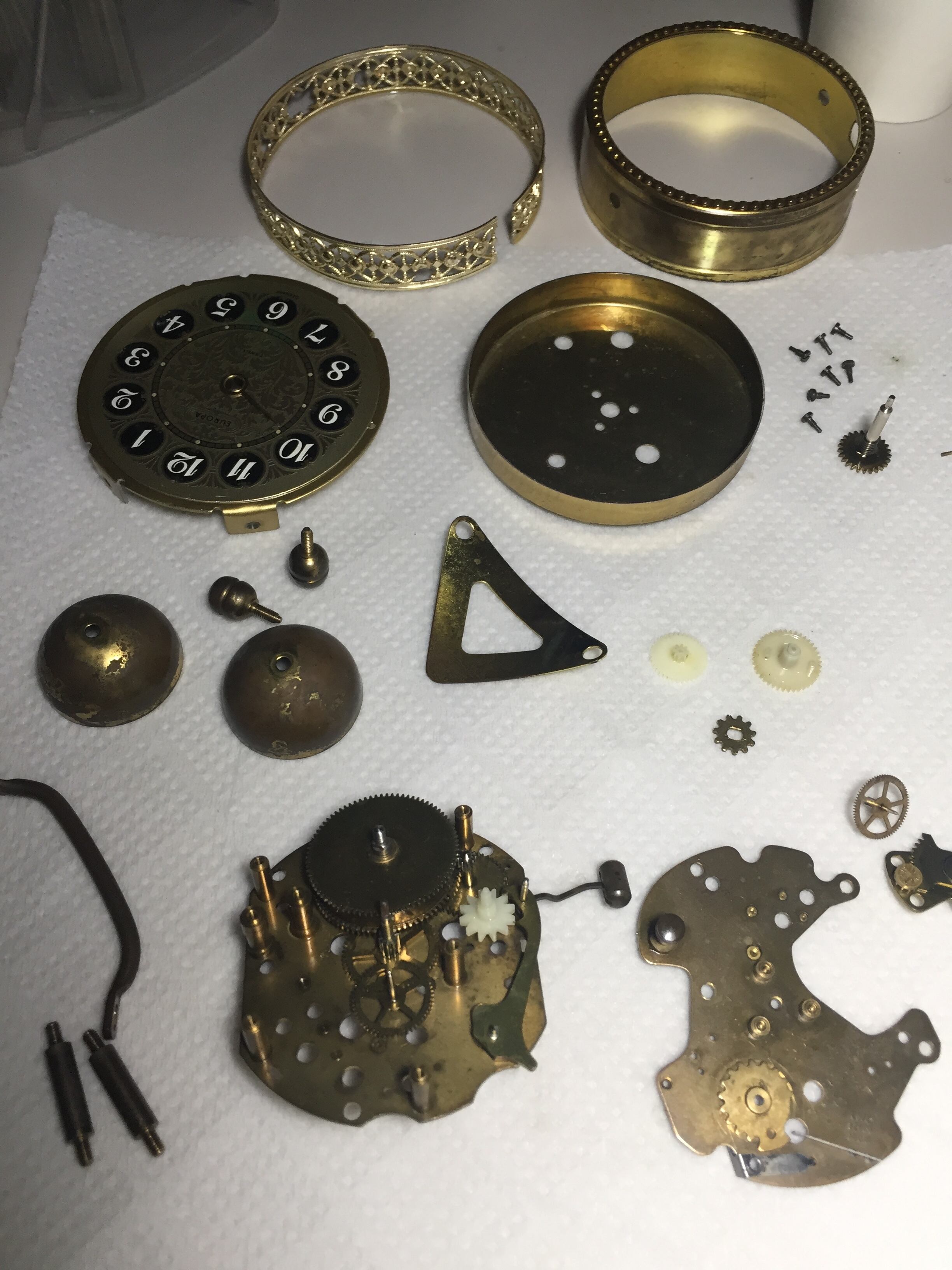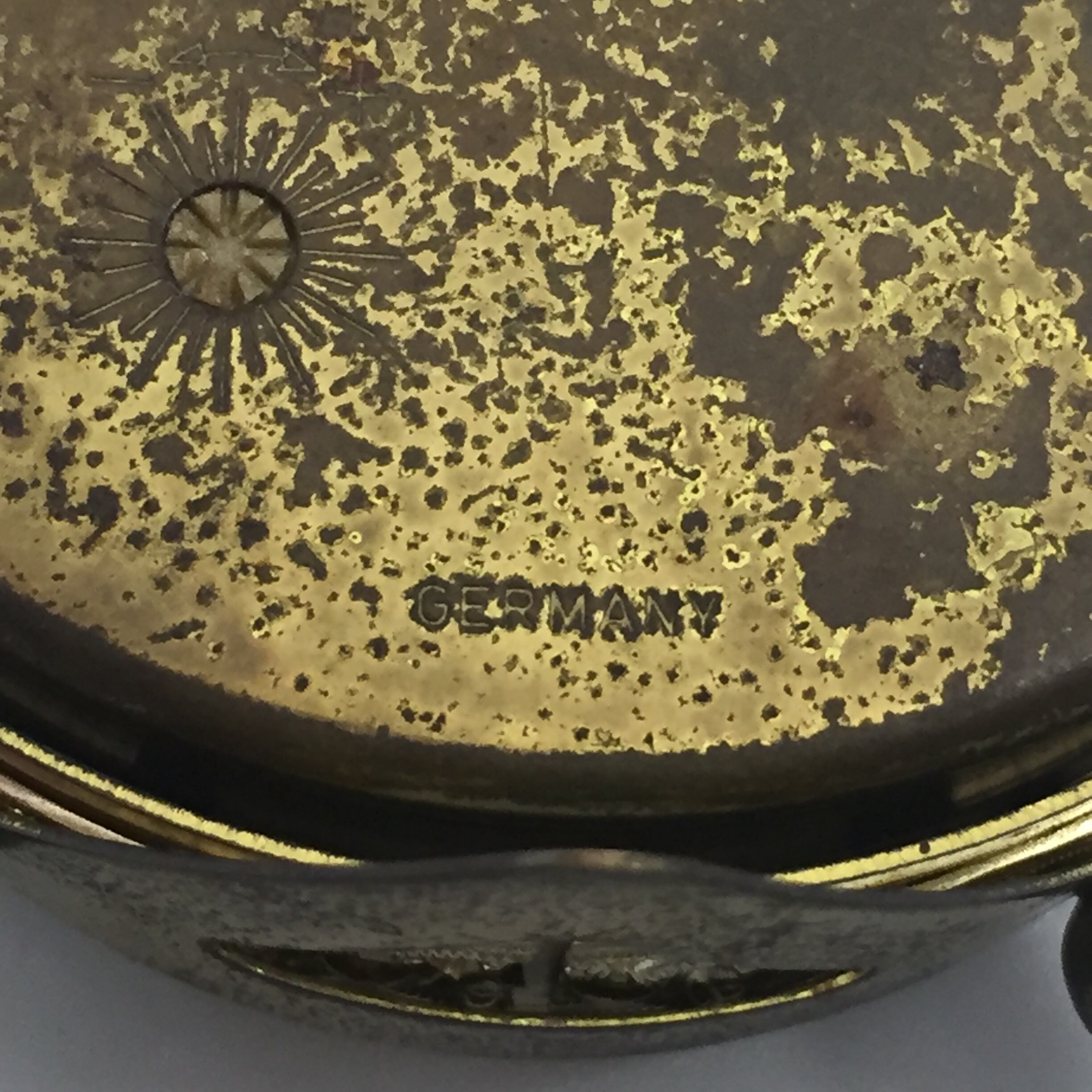 ドイツ製EUROPE 小ぶりなダブルベル目覚まし時計 オーバーホール稼働品です。文字盤にGermany の印刷があります。戦後は東西ドイツに分かれますので、1950年頃の製造と思われます。