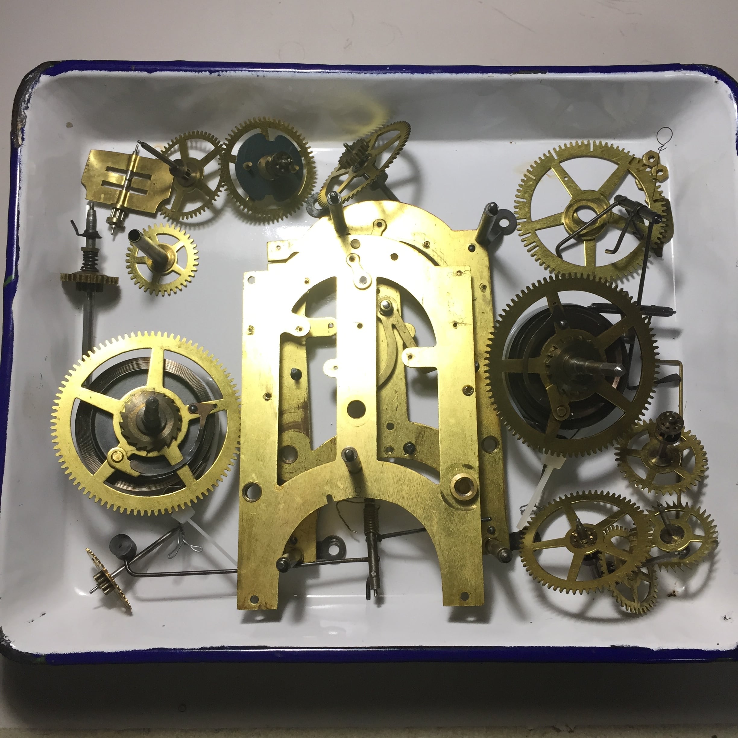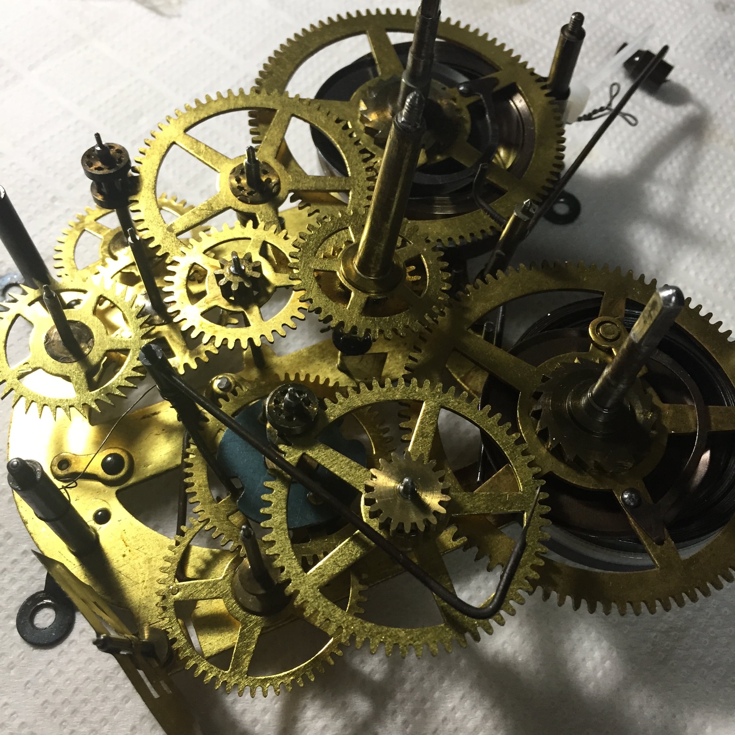 振り子室には、愛知県時計工業組合のシールがありますので、昭和5年頃の製造と分かります。