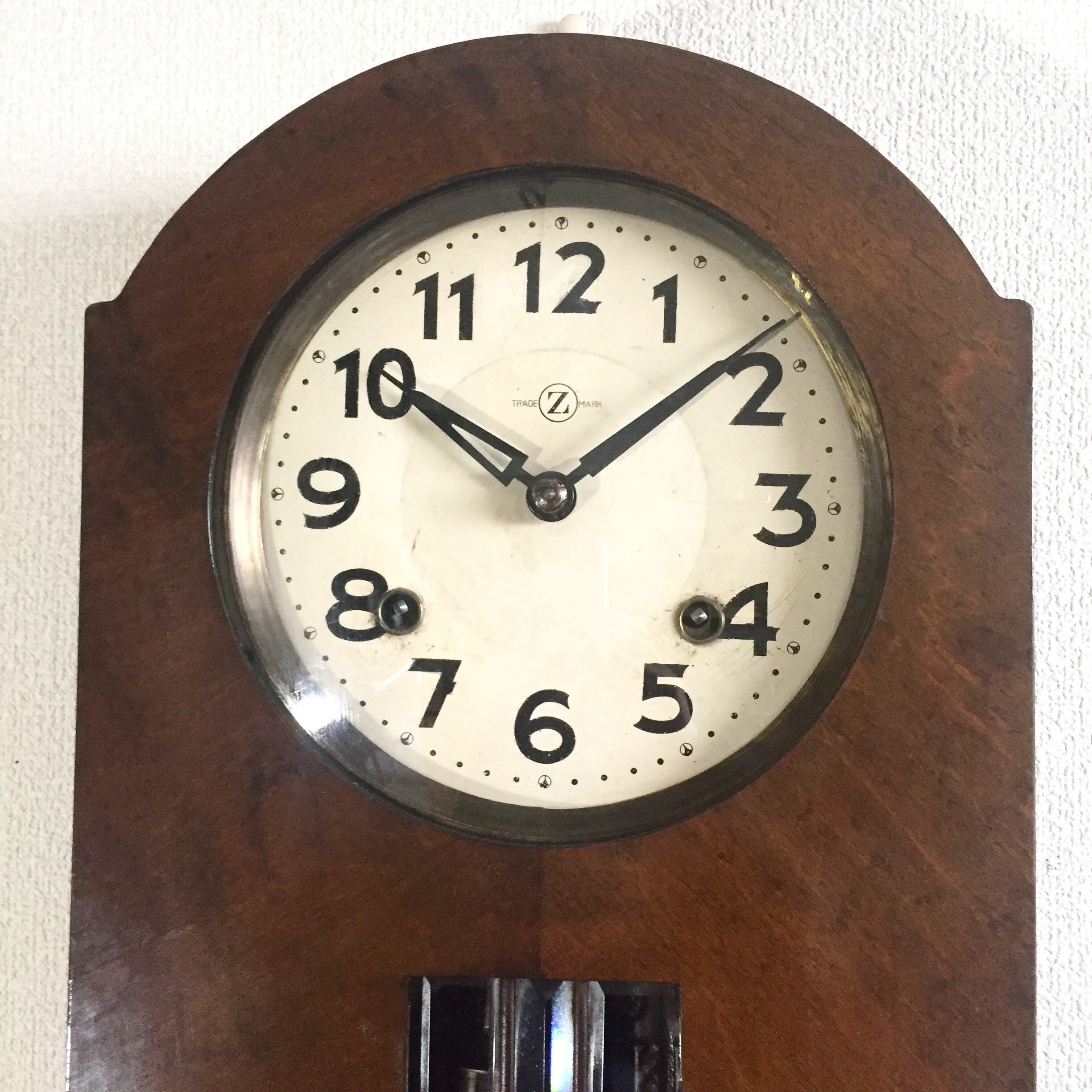 昭和初期 横浜エムズイ商会 Zマーク 頭丸アール・デコ調 掛時計 オーバーホール済稼働品