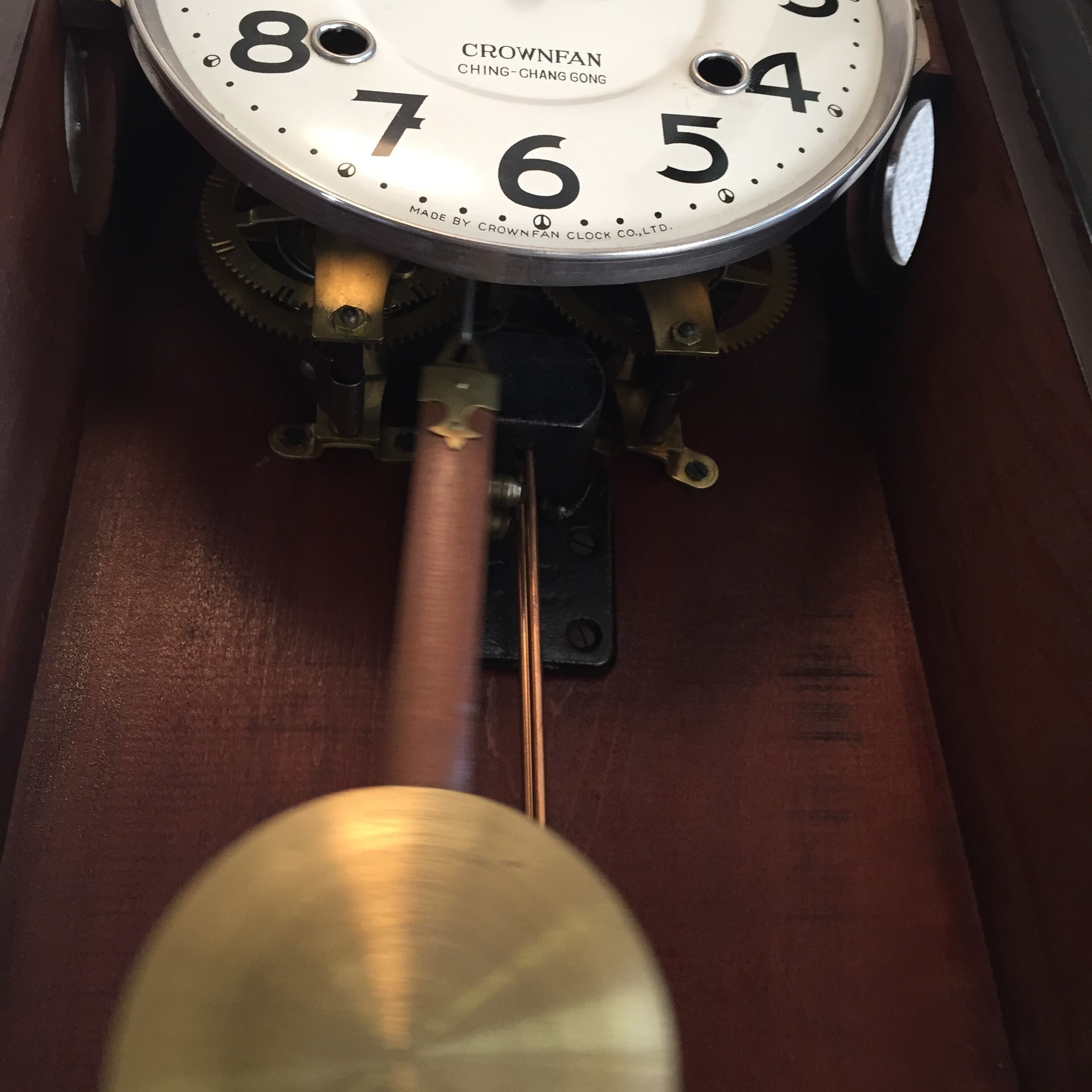 棒鈴を2本使った、チャンチャンゴングです。30分と正午の位置でチャイムの様な感じで二つの音がなります。30分は1回のみ、正午の位置は、短針の指す時間の数だけチャイムが鳴ります。