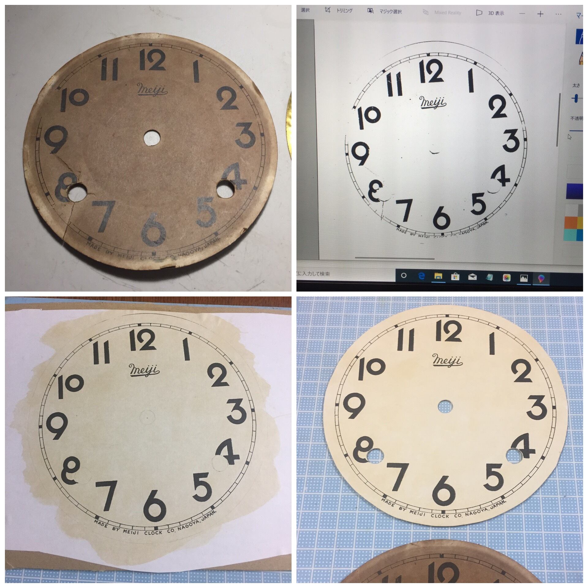 紙の文字板は、日焼けと汚れが著しいため、スキャンデータから起こした新しい文字板に交換しています。