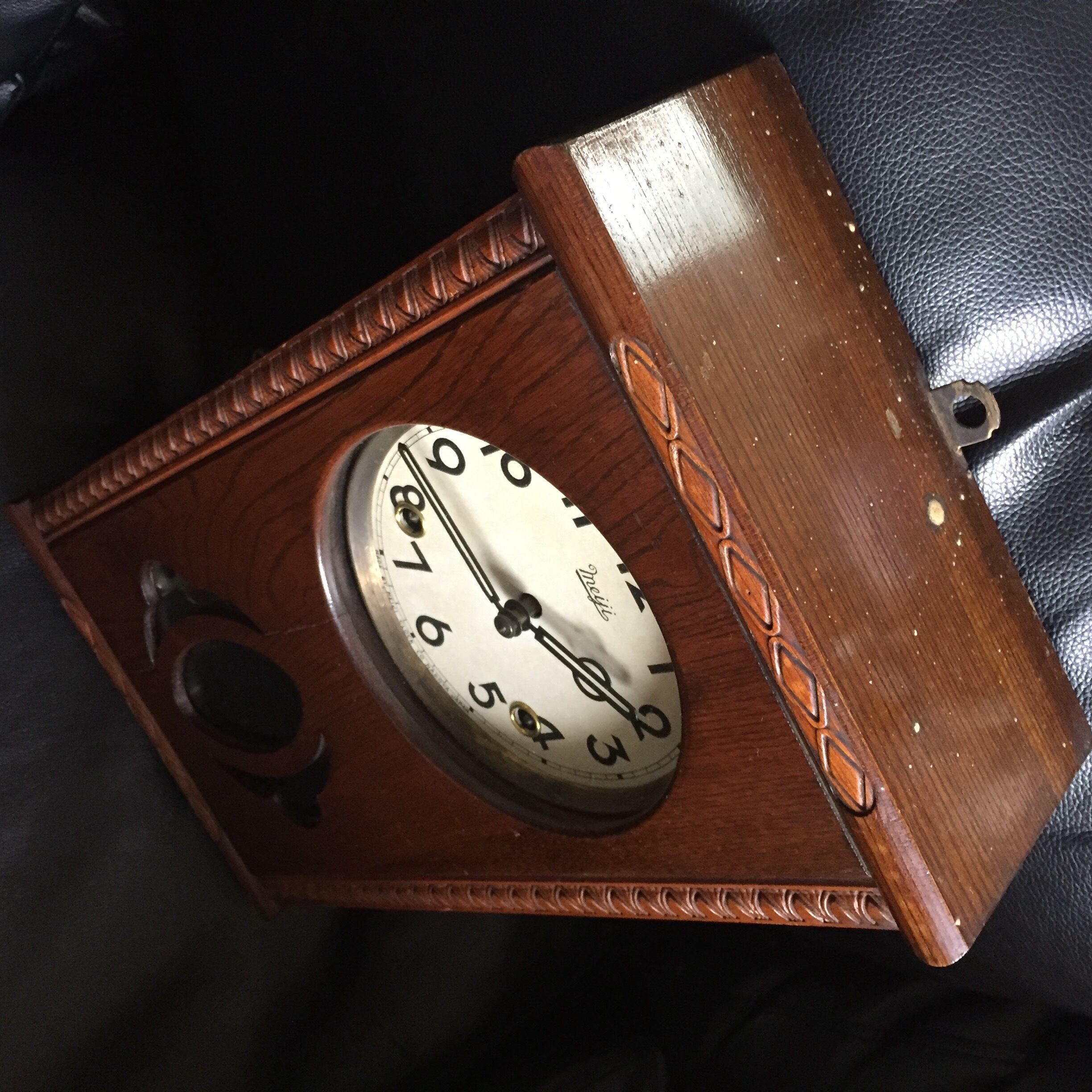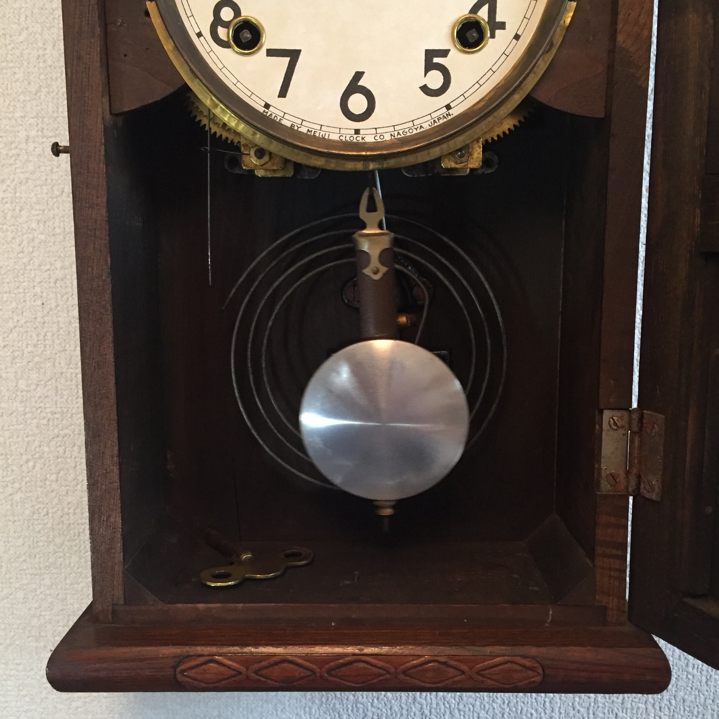 昭和初期 明治時計製 小ぶりな掛時計 オーバーホール済 扉補修 稼働品