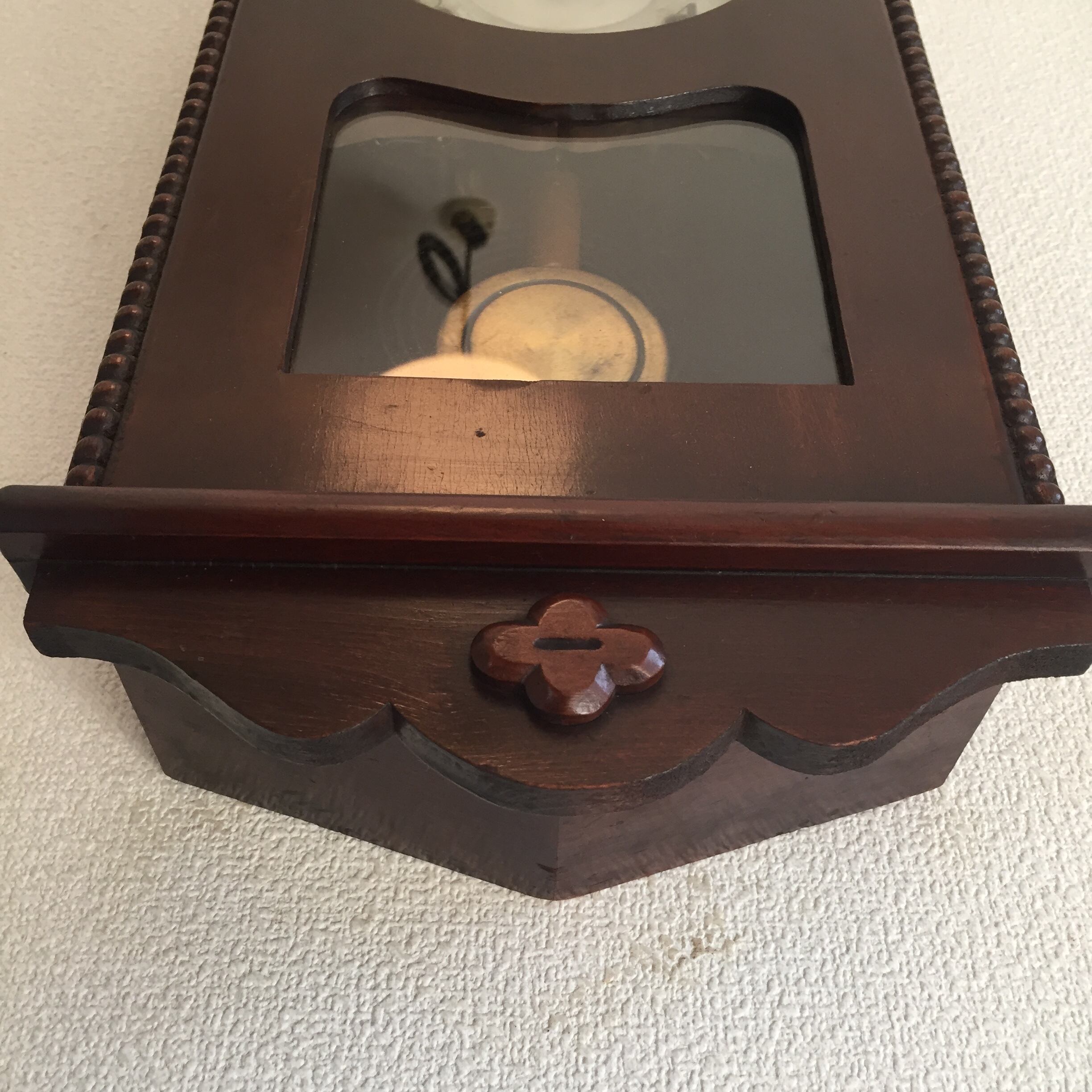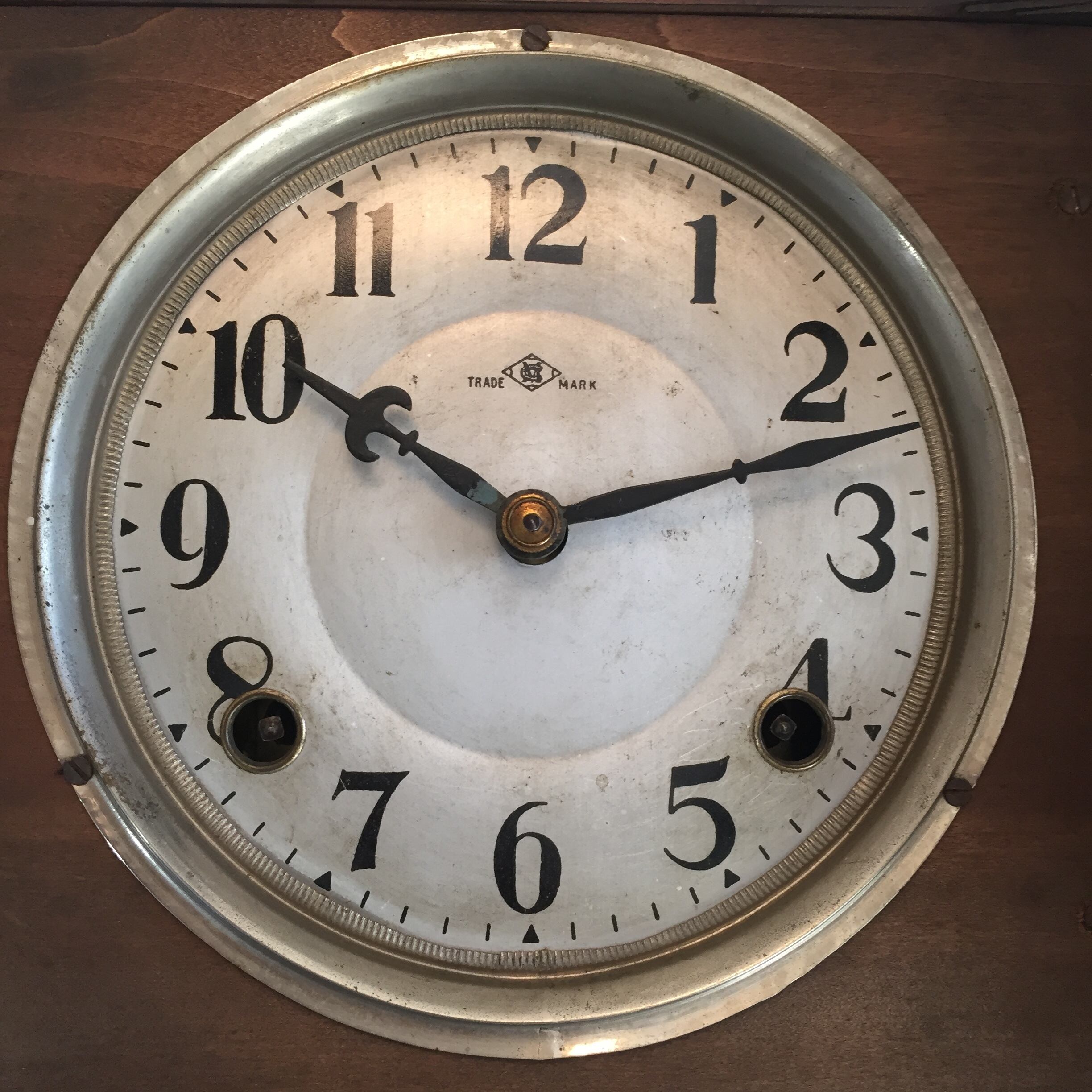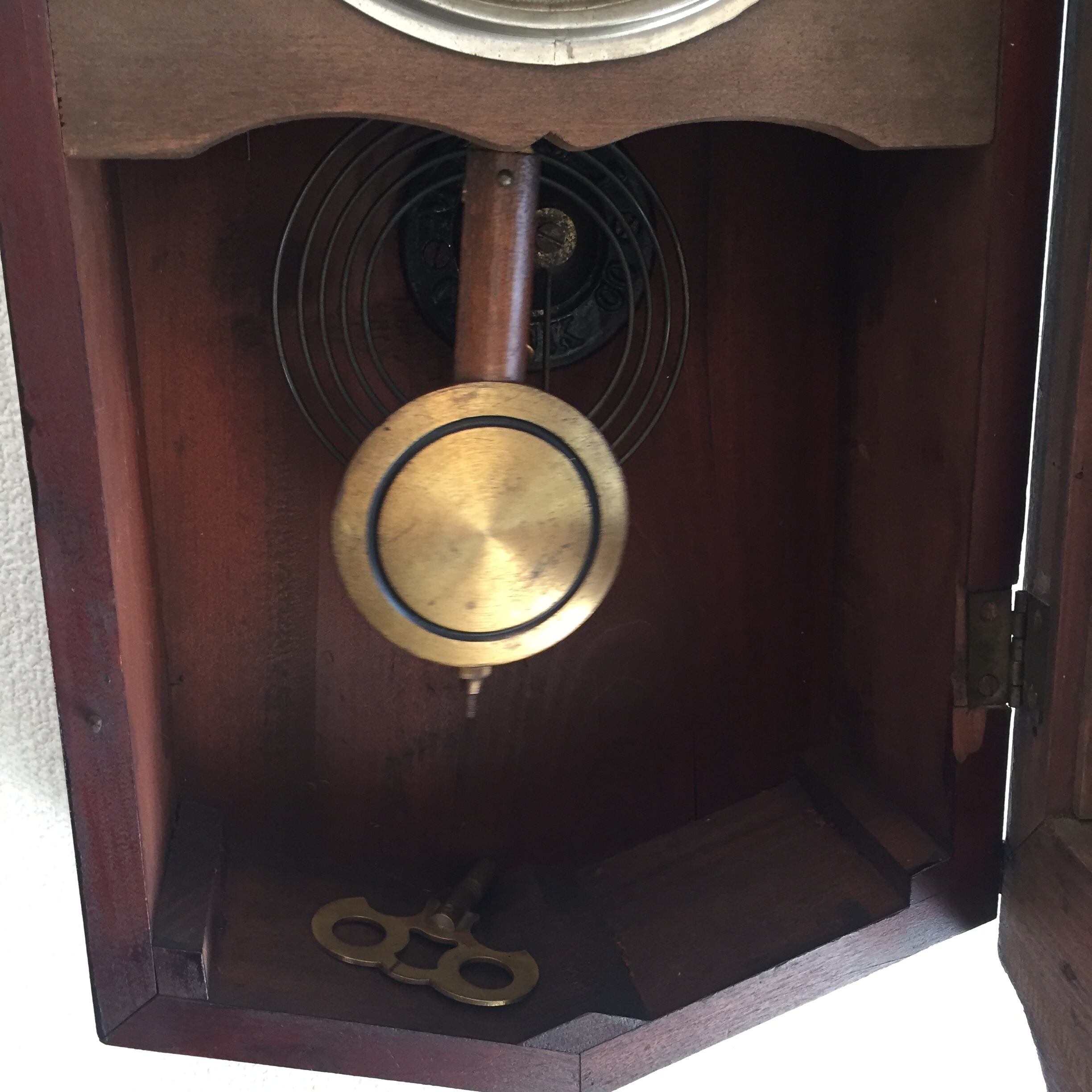 昭和初期 明治時計製 頭丸レトロモダンな機械式掛時計 オーバーホール済 稼働品です。