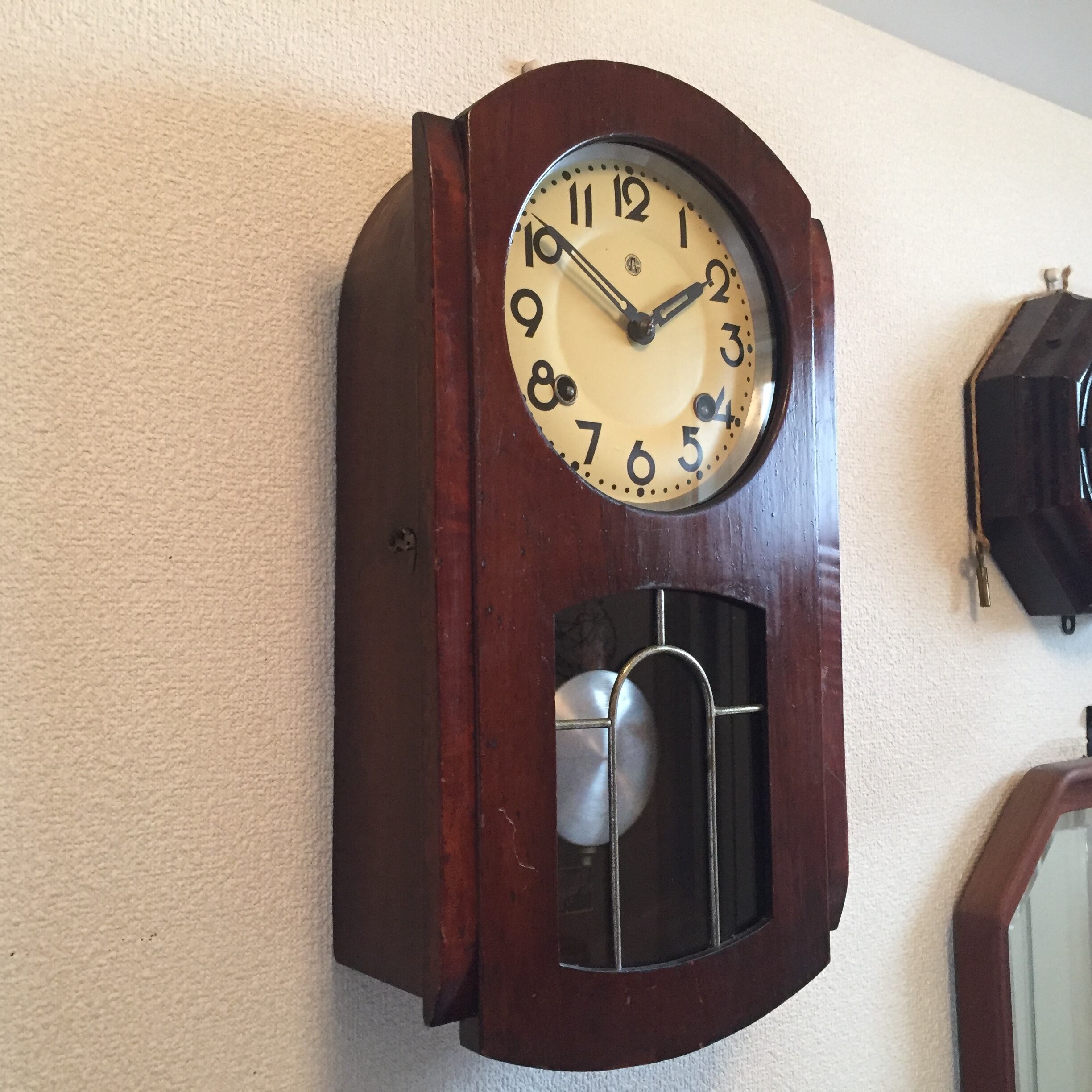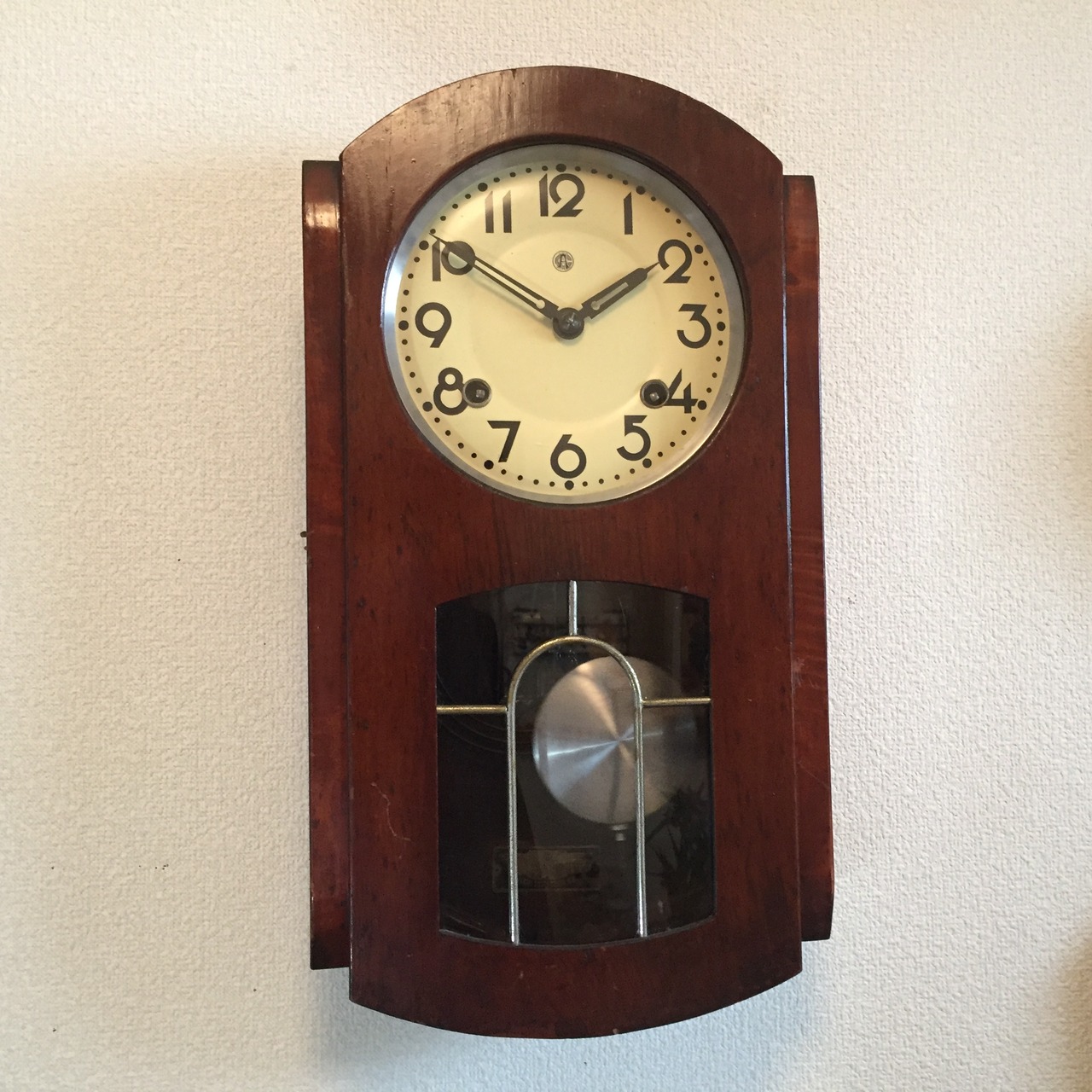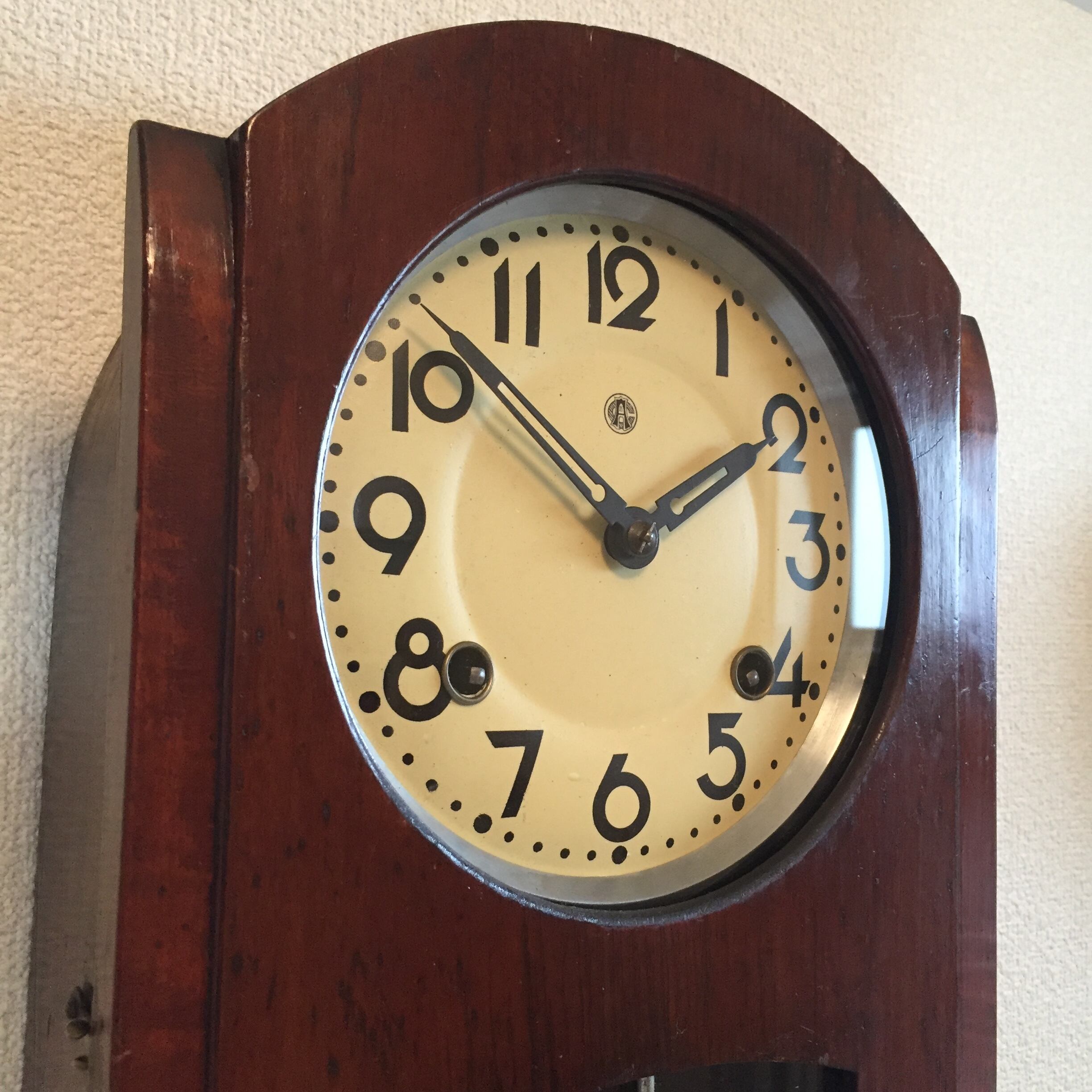 アルミの振り子に機械はすべて真鍮製ですので、製造時期は戦後間もない頃と思われます。
