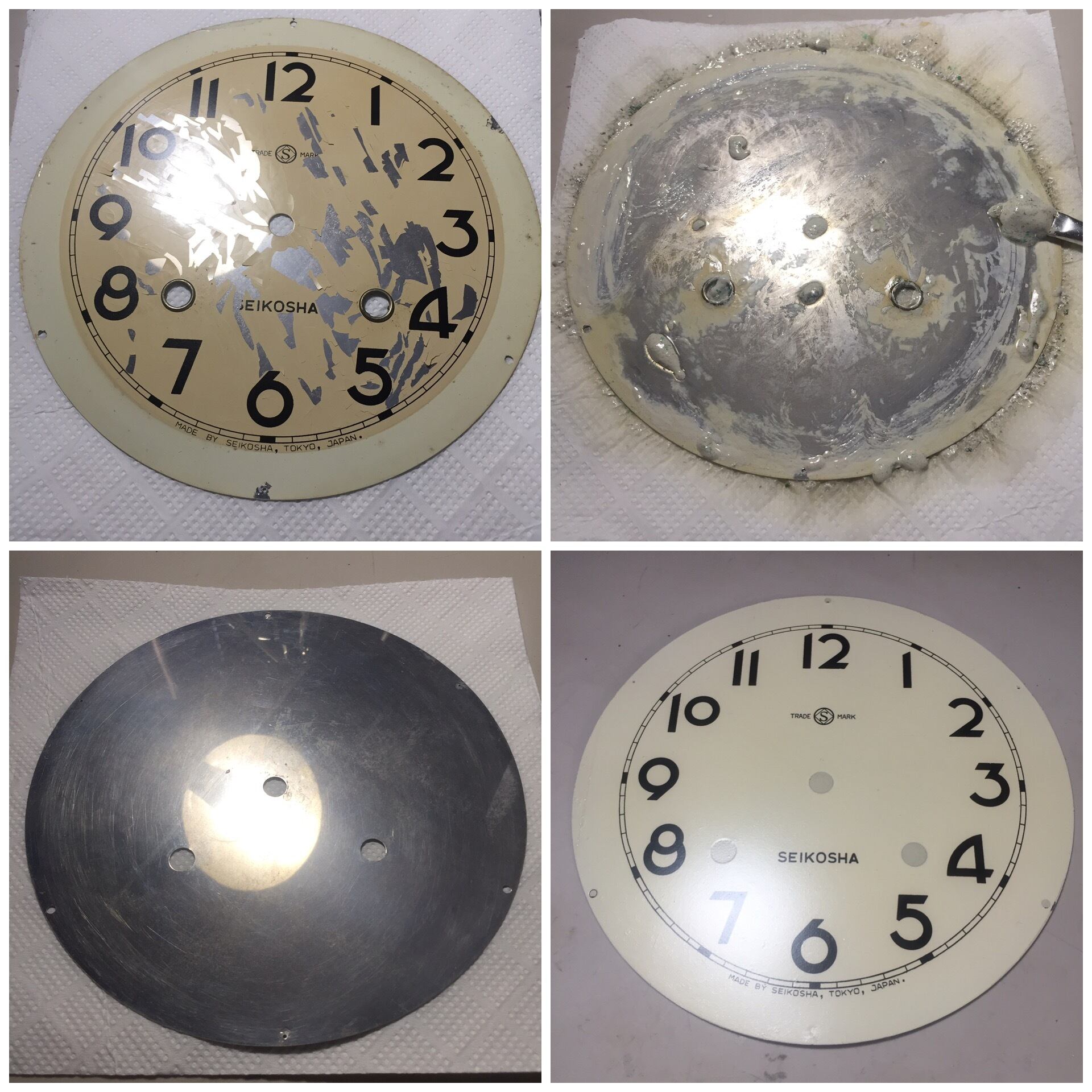 文字盤は、経年による塗装隔離がありましたので、オリジナルをスキャンして再生修復した新しい文字板に交換しています。