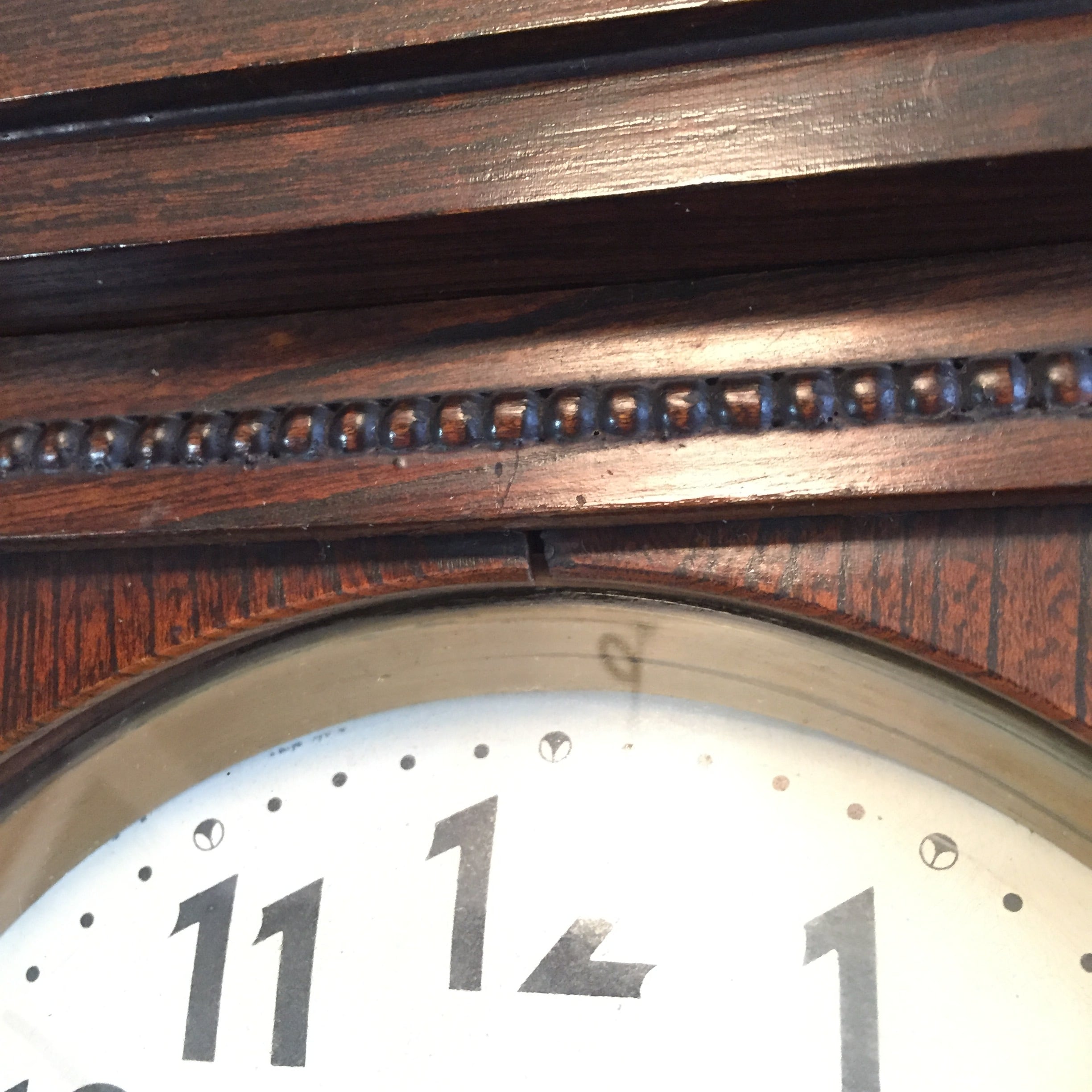 12時の上に板の亀裂がありますが、殆ど目立ちません。このほか、時代相応の経年による擦れやキズ、汚れなどがあります。