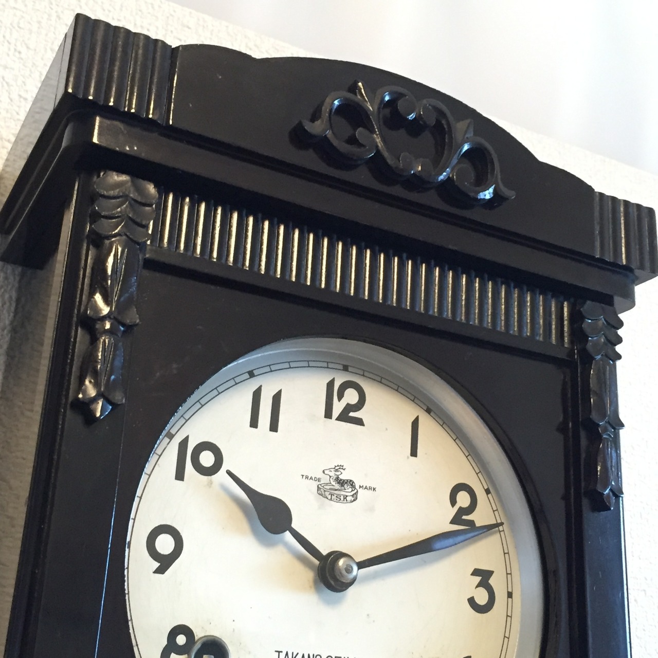 この時計は、戦後昭和30年頃の製造と思われます。漆黒の締まった色合いの飽きのこないオーソドックスな宮型時計です。