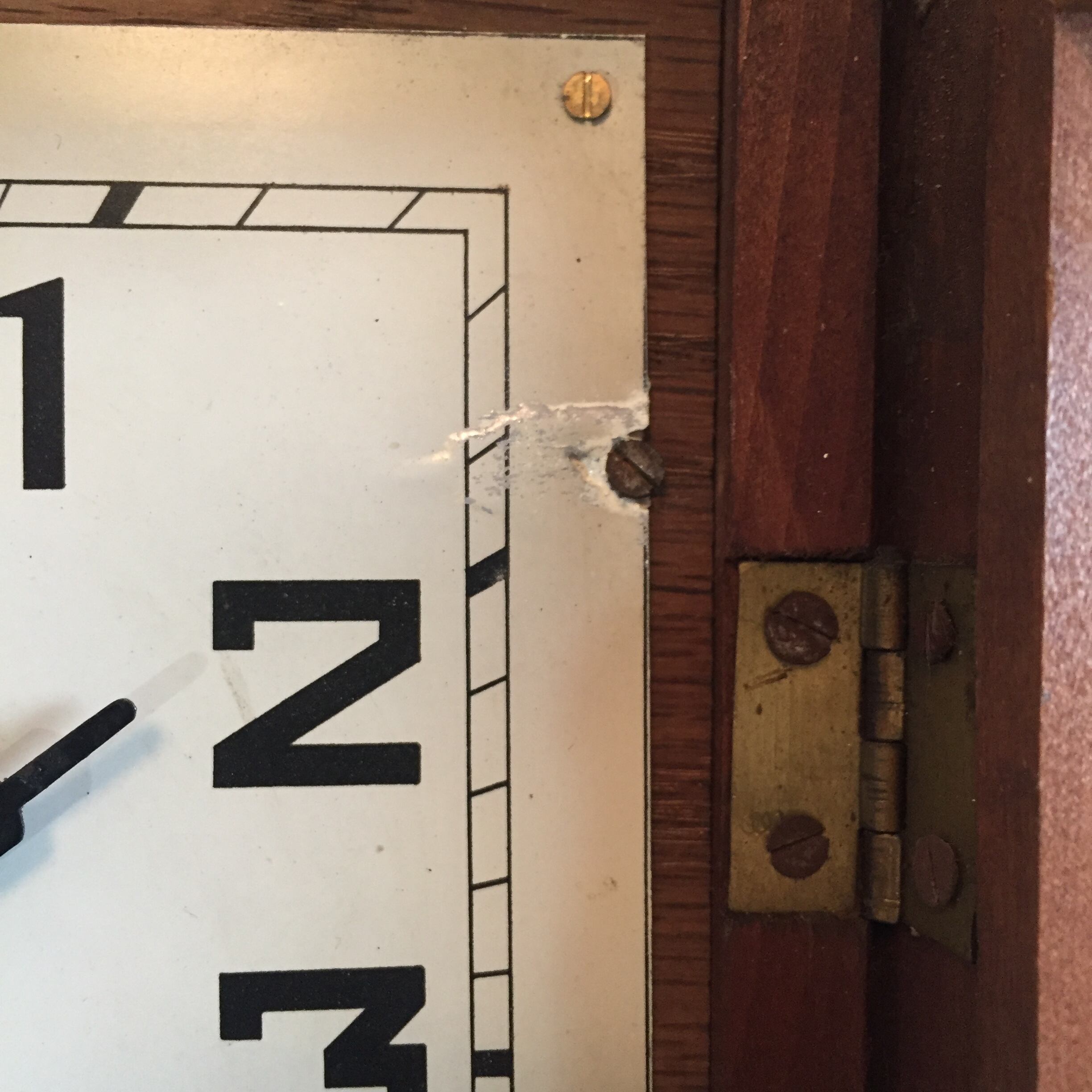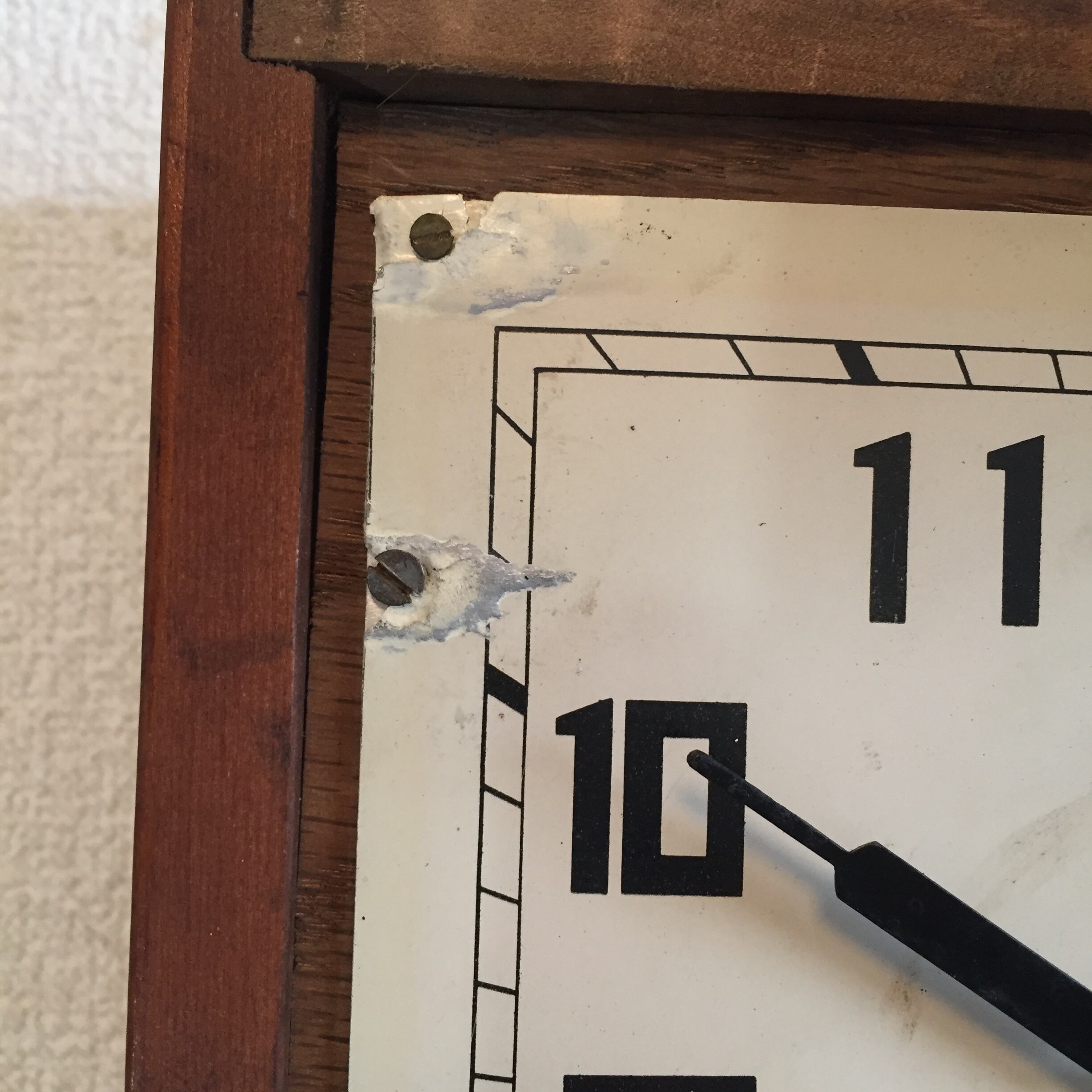 アルミ製の文字板が錆で劣化して、4隅のねじ留めができない状態でしたので、アルミ板を継ぎ足して色味を合わせています。