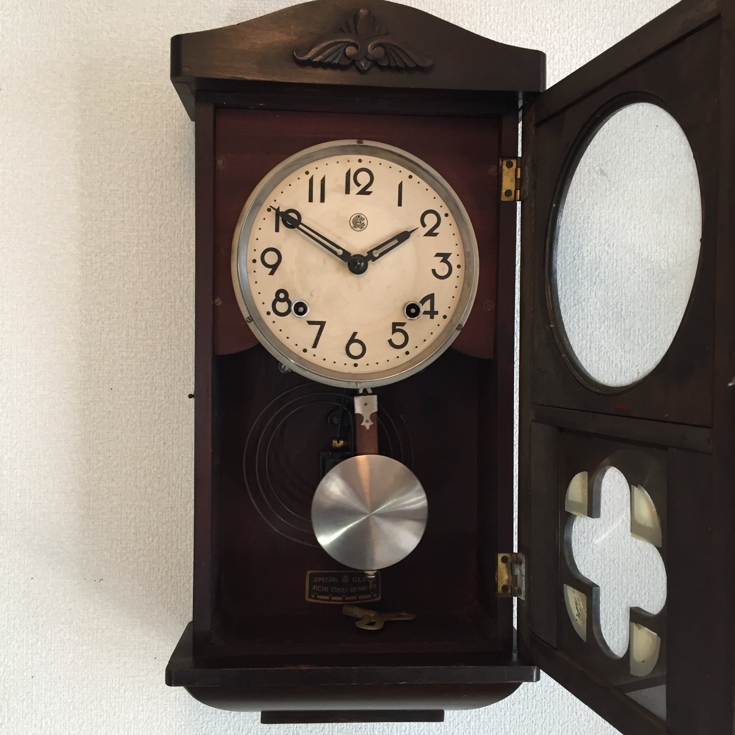 オシャレで人気のデザインの愛知時計です。リビングや和室、店舗にも合わせ安い時計です。レトロ感溢れる時計です。