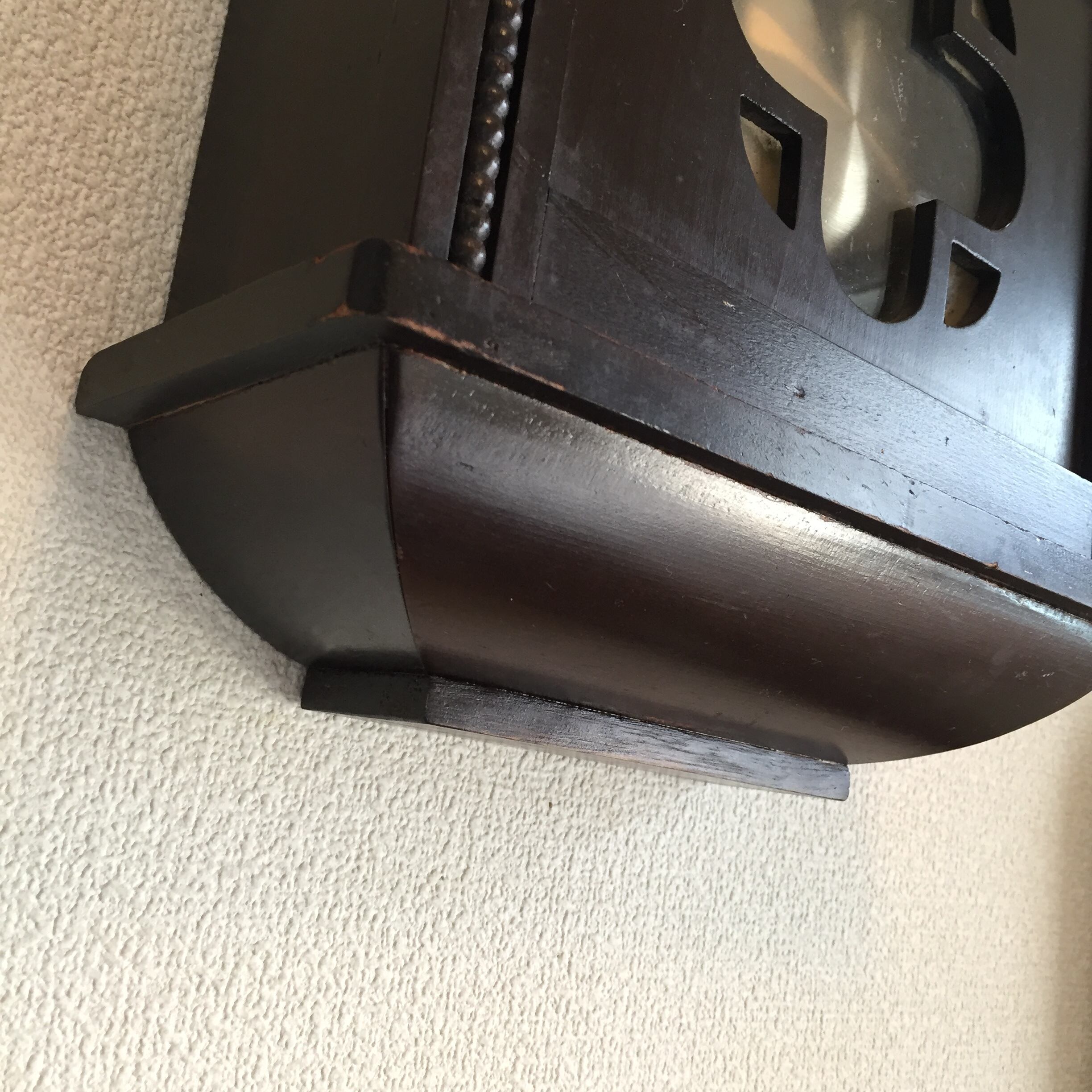 宮飾りの向かって右の側面と底板の部品が欠損していましたので、木材を加工して修復しています。