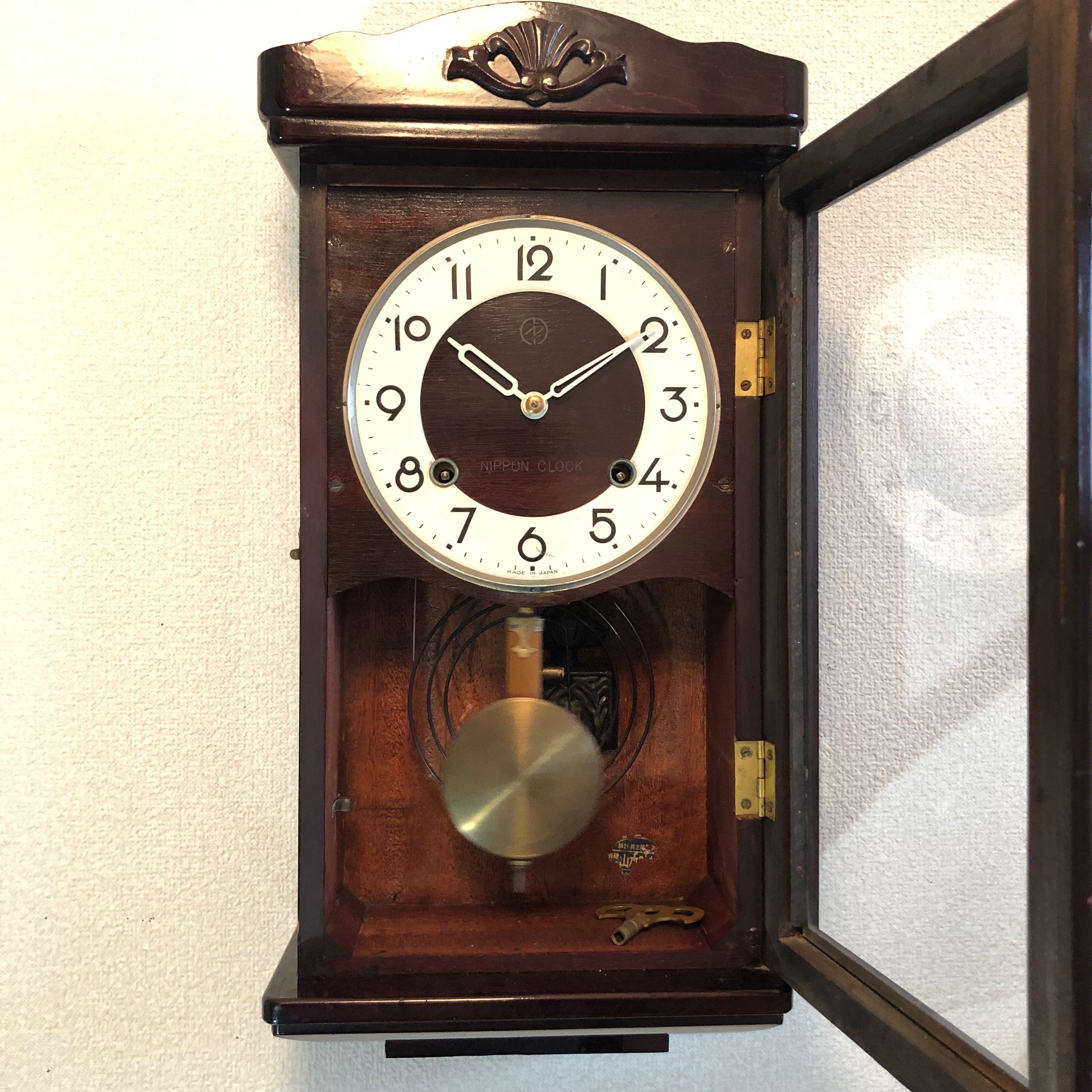 昭和レトロ 昭和30年頃 日本時計 一枚扉宮型ボンボン時計 オーバーホール整備済み稼働品です。