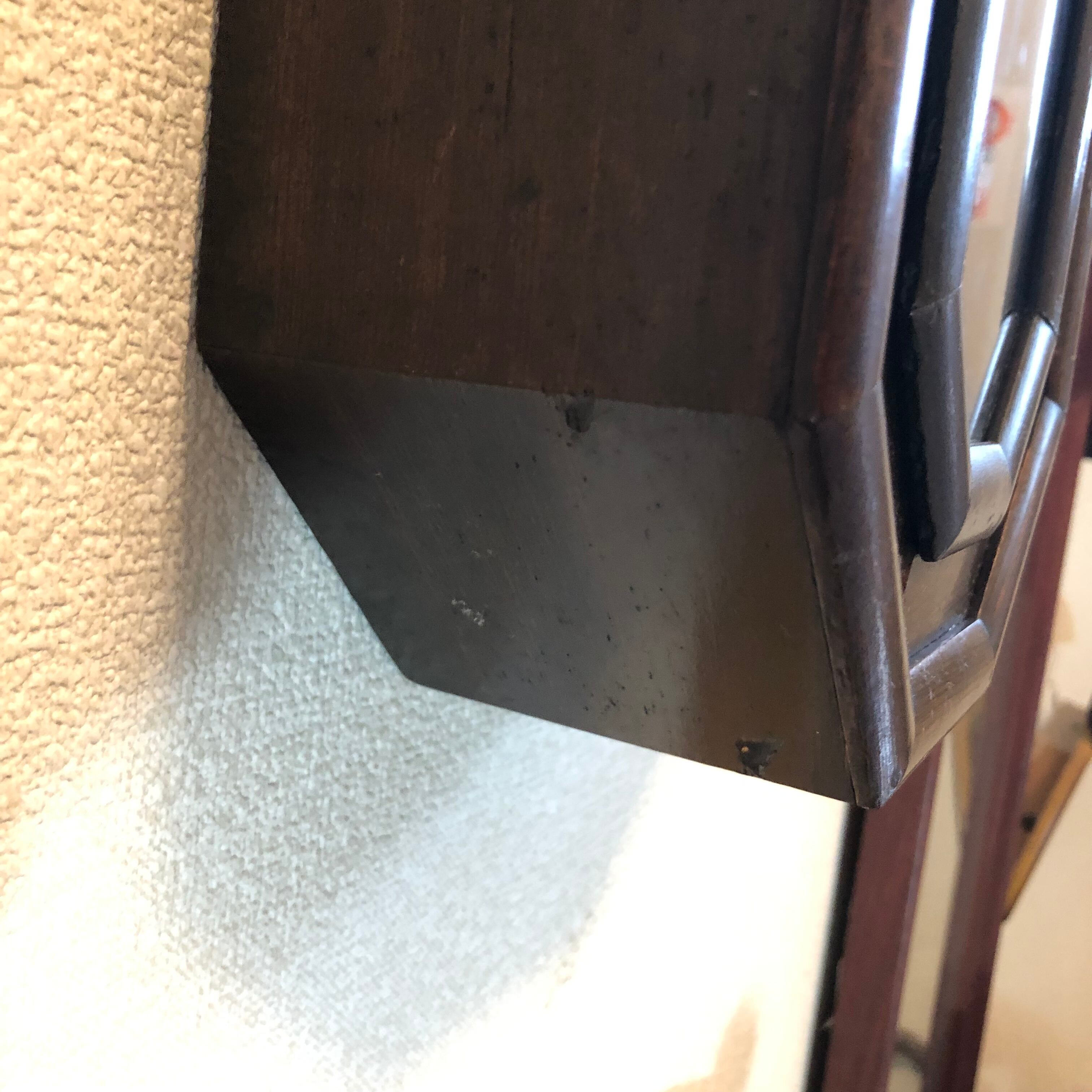 また、振り子室の枠が外れていたものを、ニカワで接着復元しています。ガラスは入れ替えられたものと思われます。使用に支障はありません。