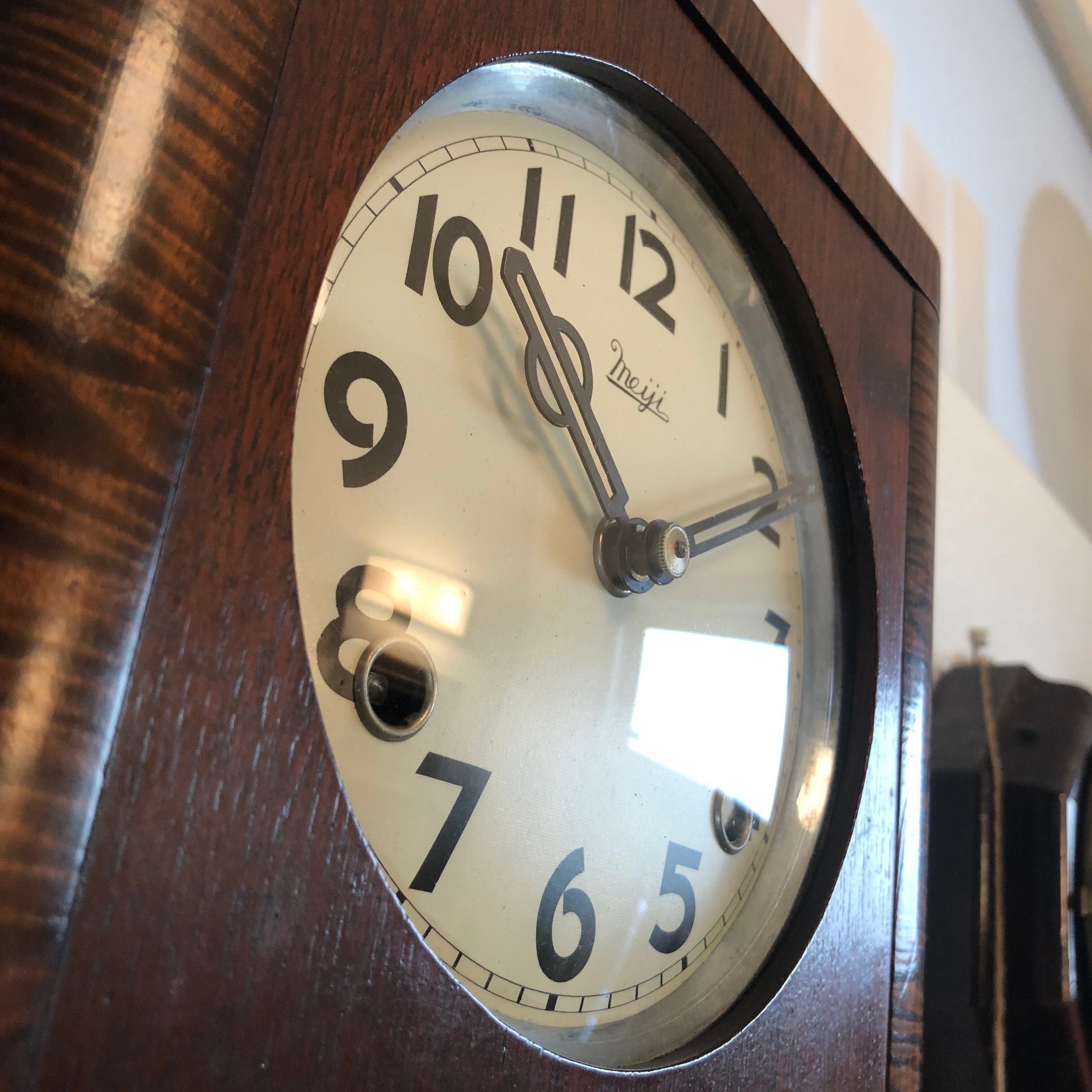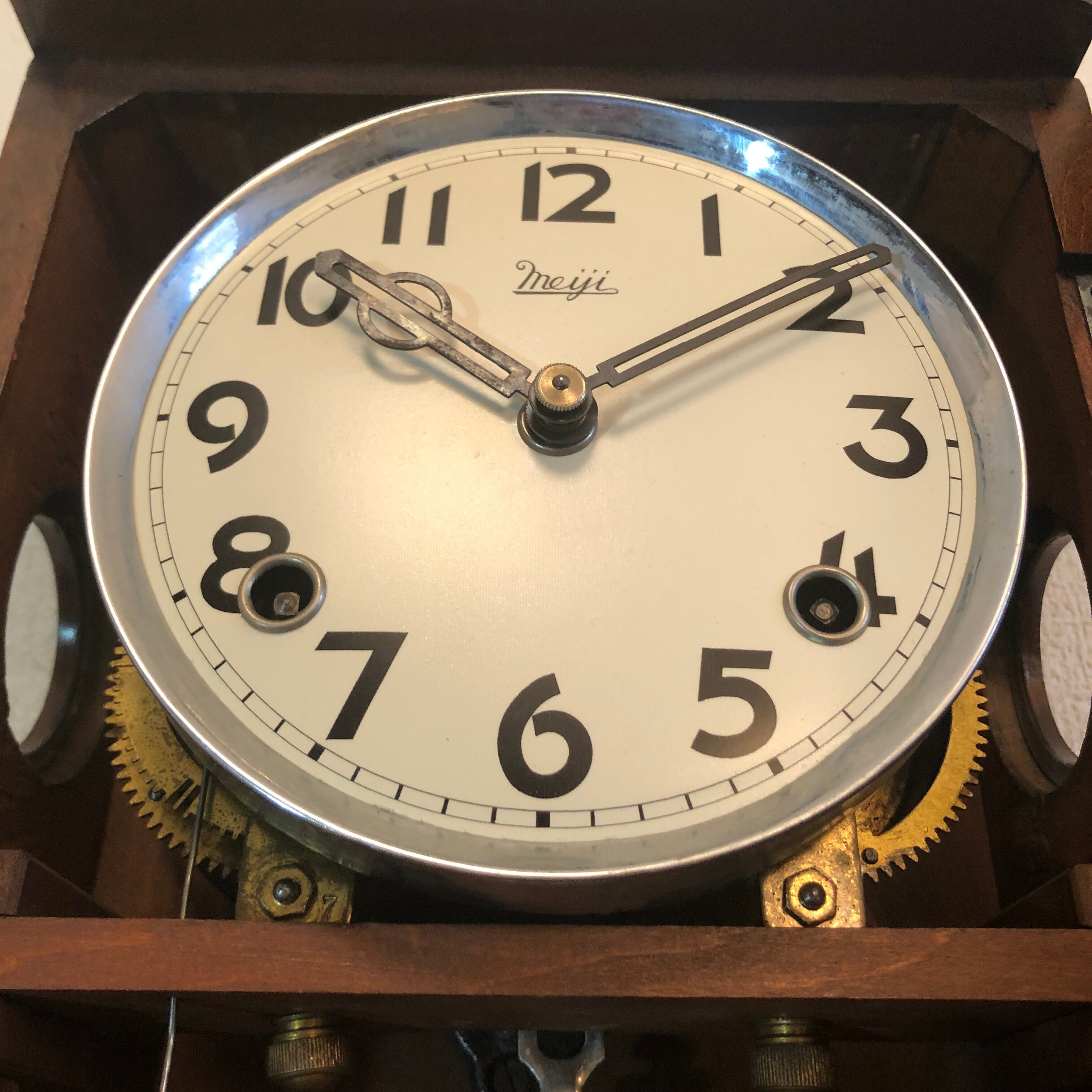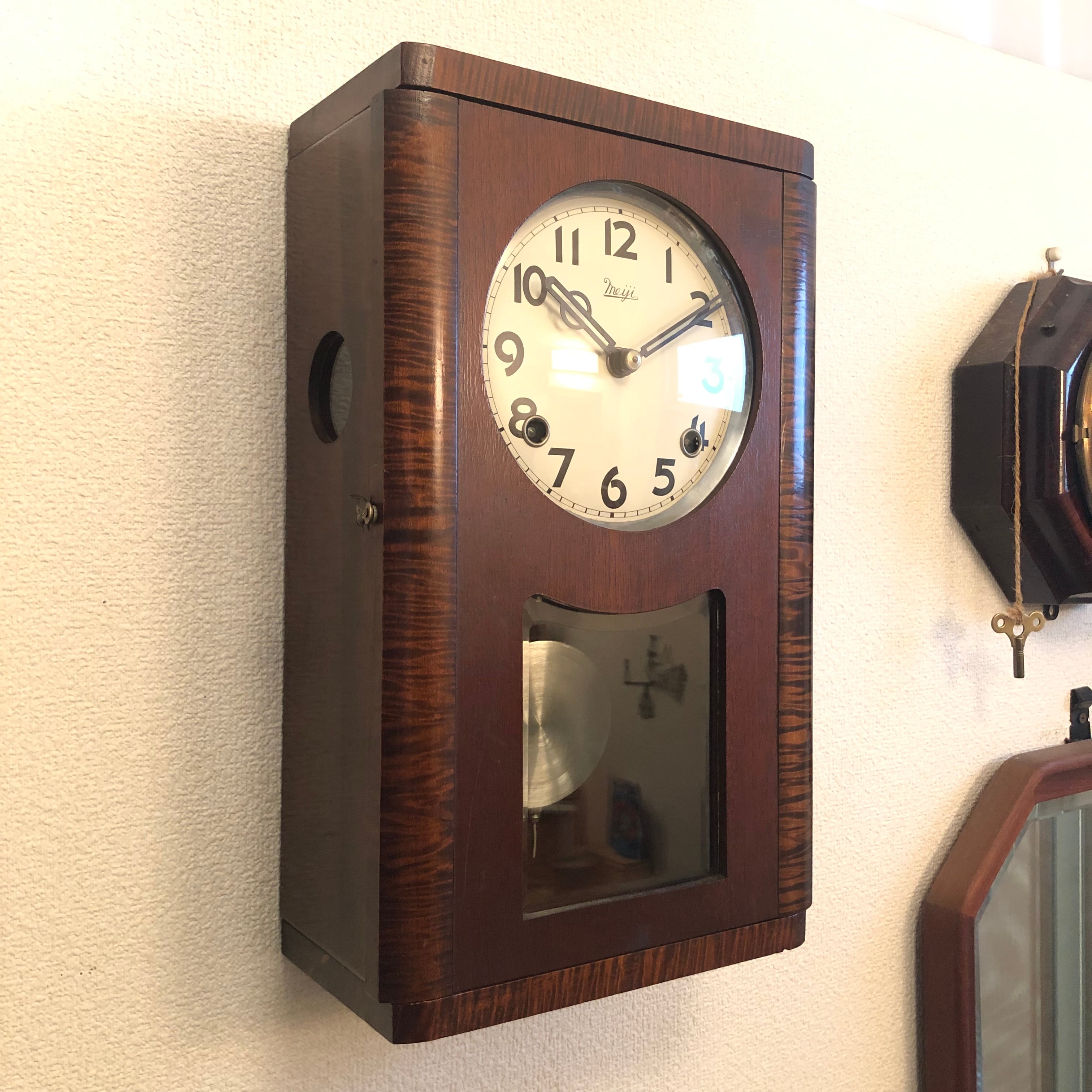 昭和初期頃の明治時計製 シンプルモダンな掛時計オーバーホール済稼働品