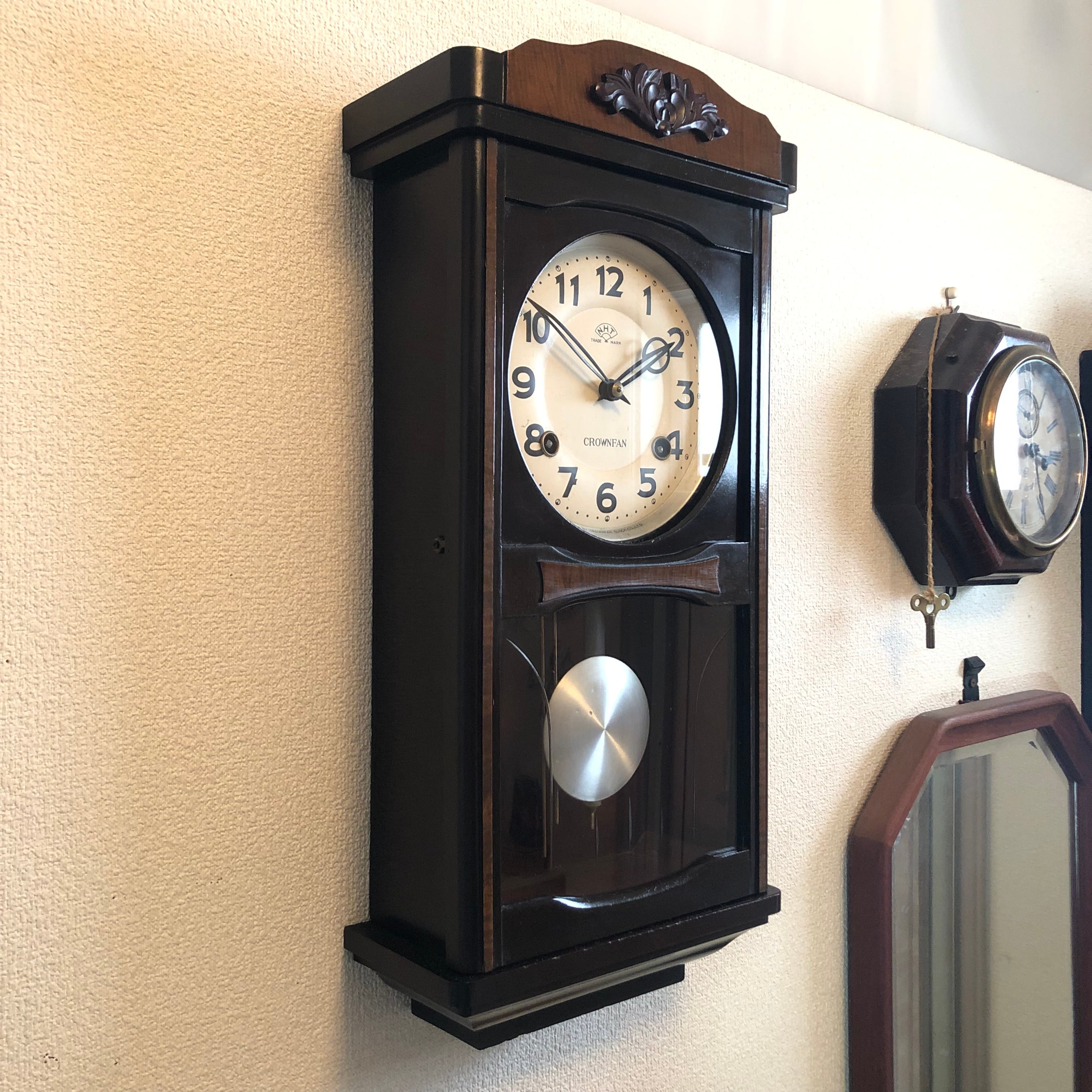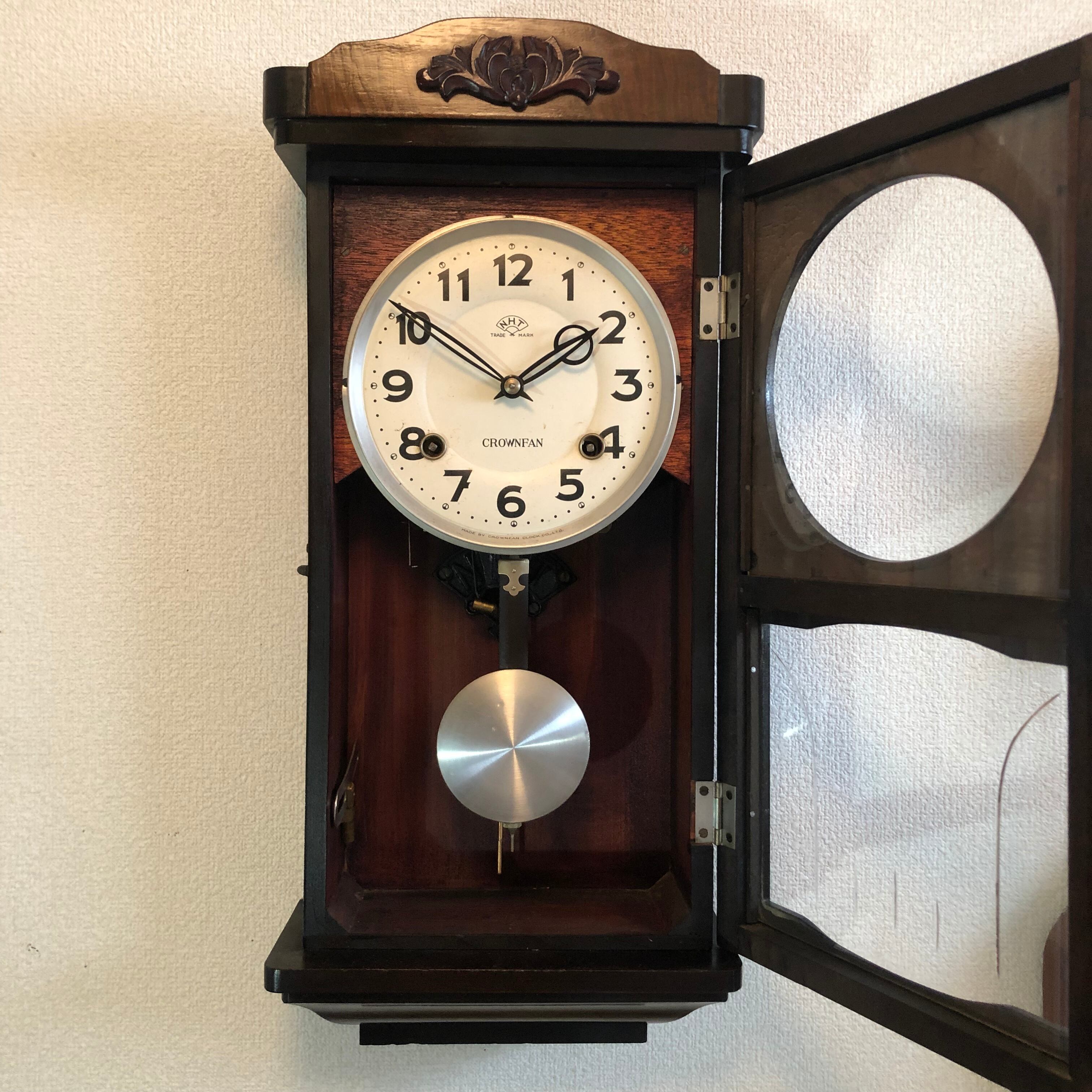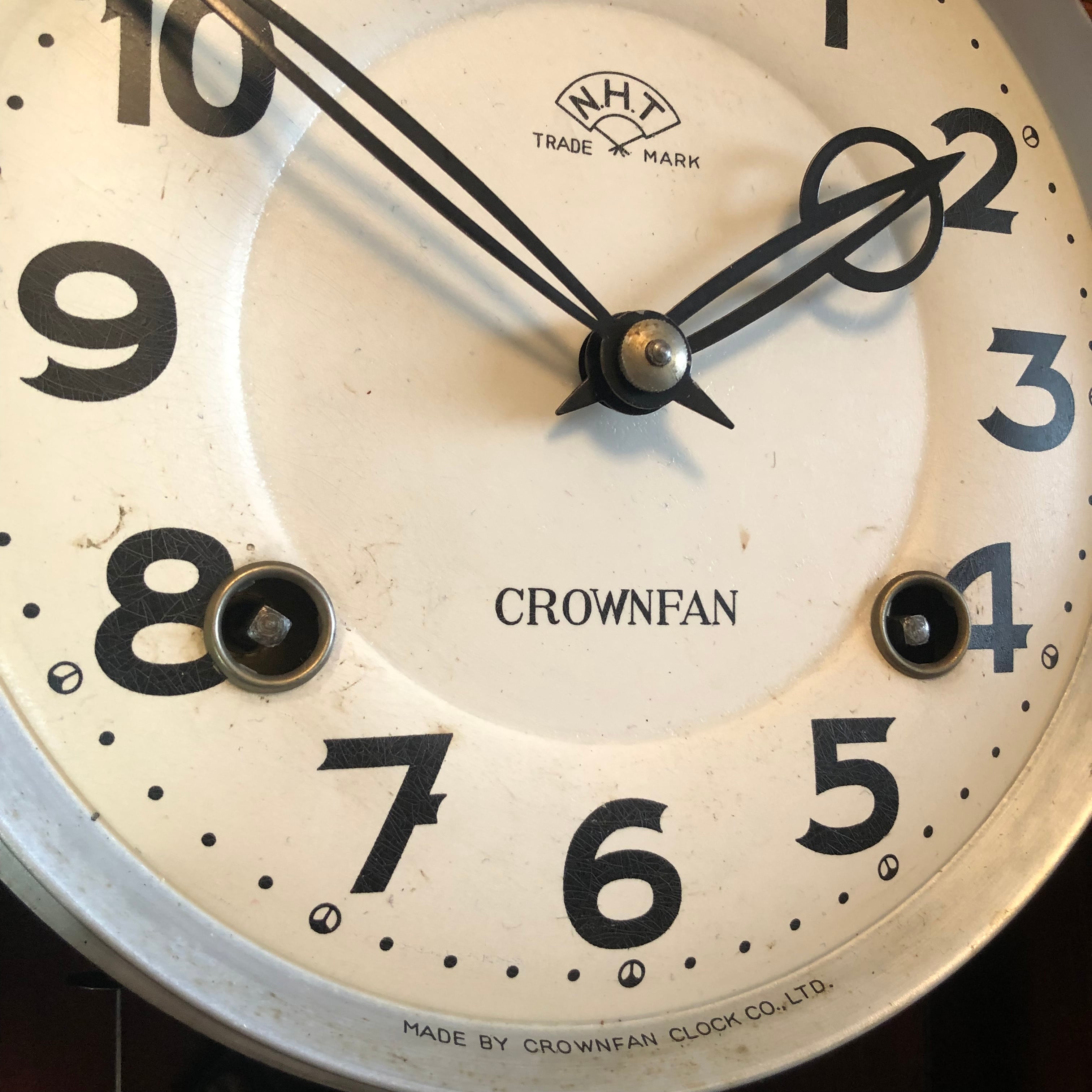 昭和レトロ 堀田時計製 クラウンファン 棒鈴ツートン宮型掛時計 オーバーホール済稼働品です。