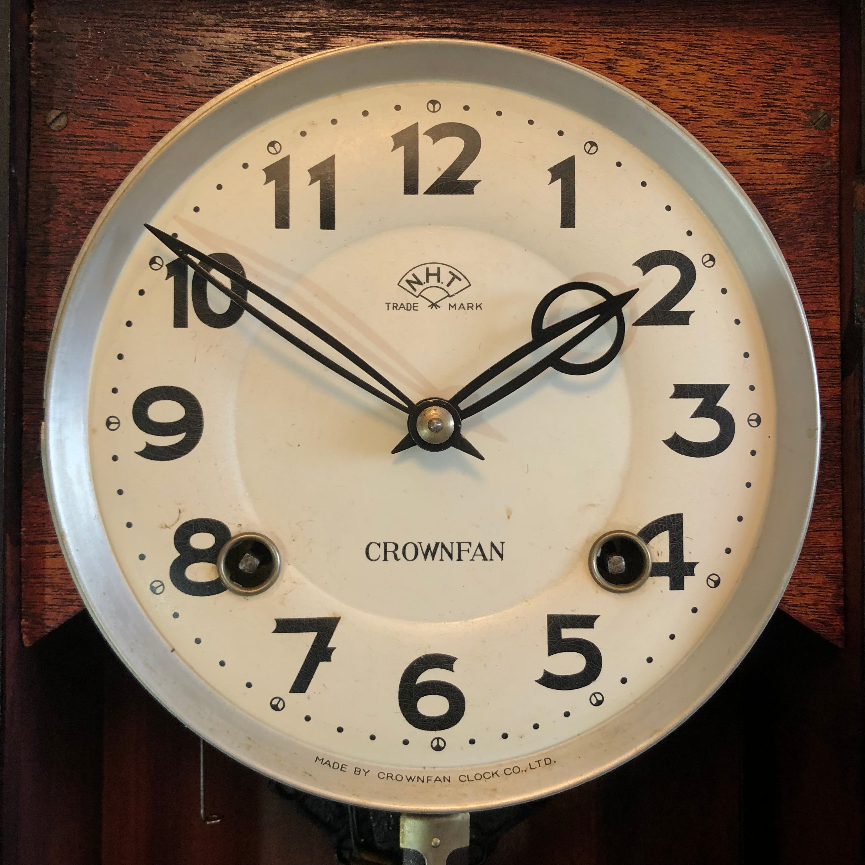 昭和レトロ 堀田時計製 クラウンファン 棒鈴ツートン宮型掛時計 オーバーホール済稼働品