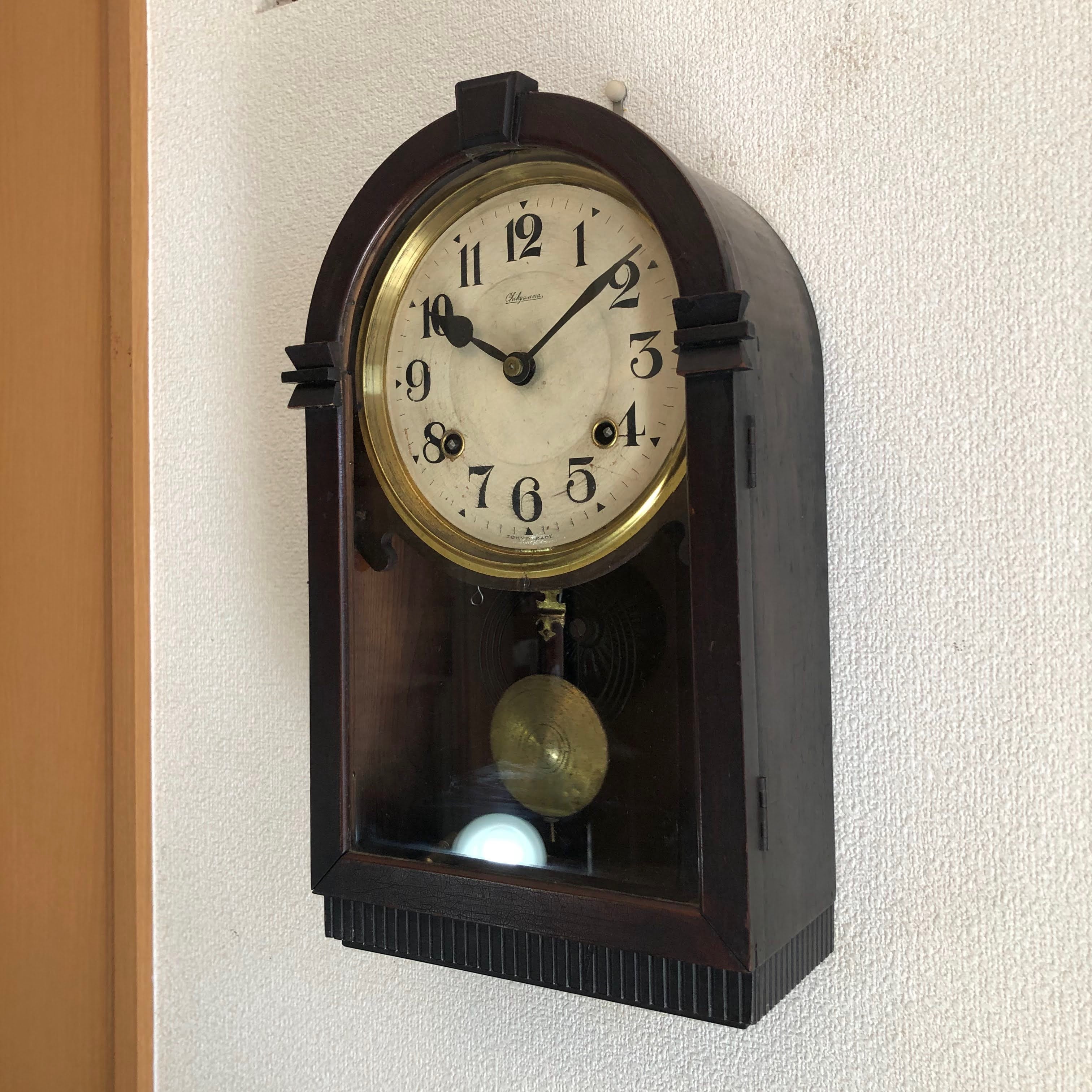 振り子は、入手時欠損しており、当時のオリジナルのものではありませんが、同時期の合うものを使用しています。実用には支障はありません。