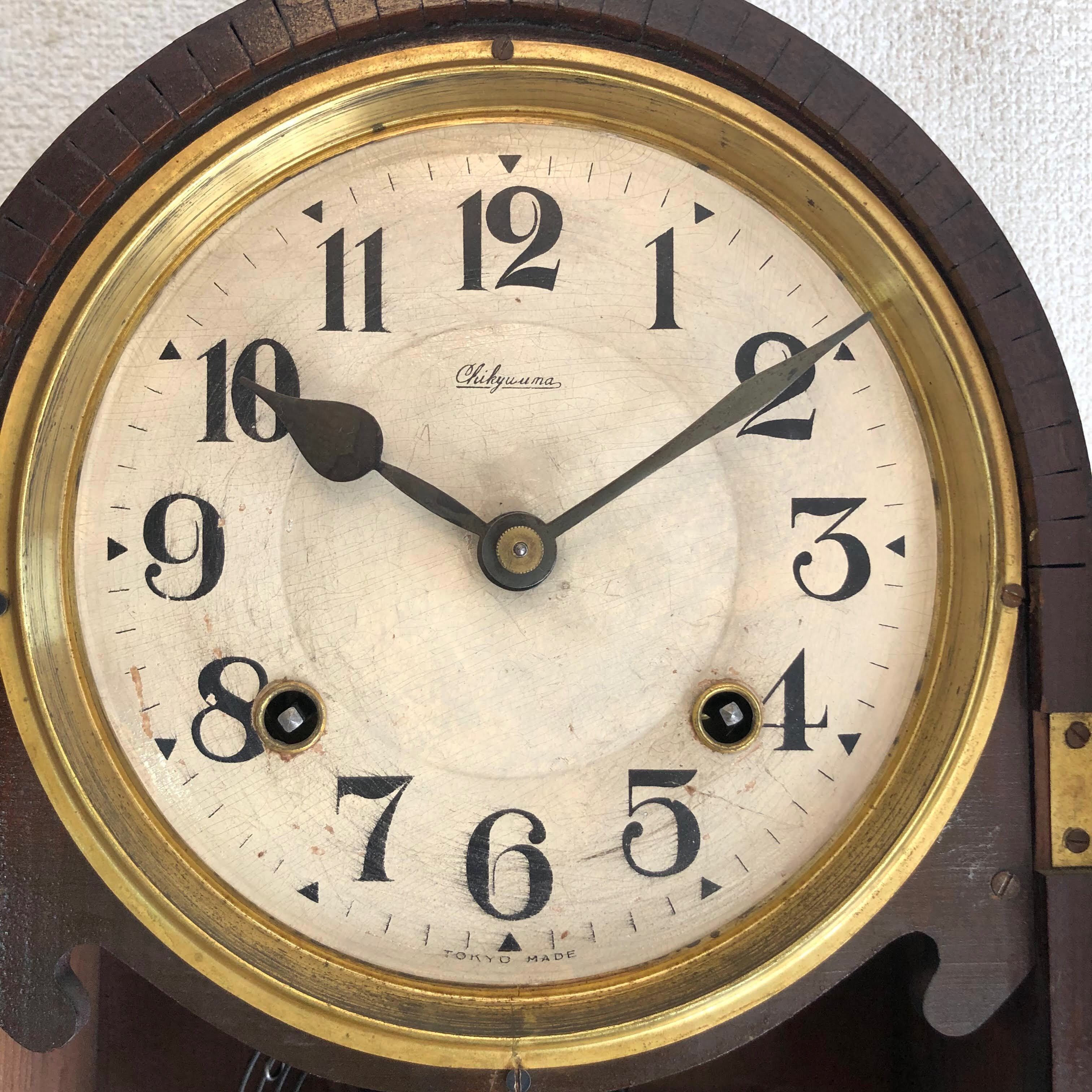 昭和初期 chikyuuma 尾張時計 頭丸楔型モダンデザイン掛時計 オーバーホール済 稼働品