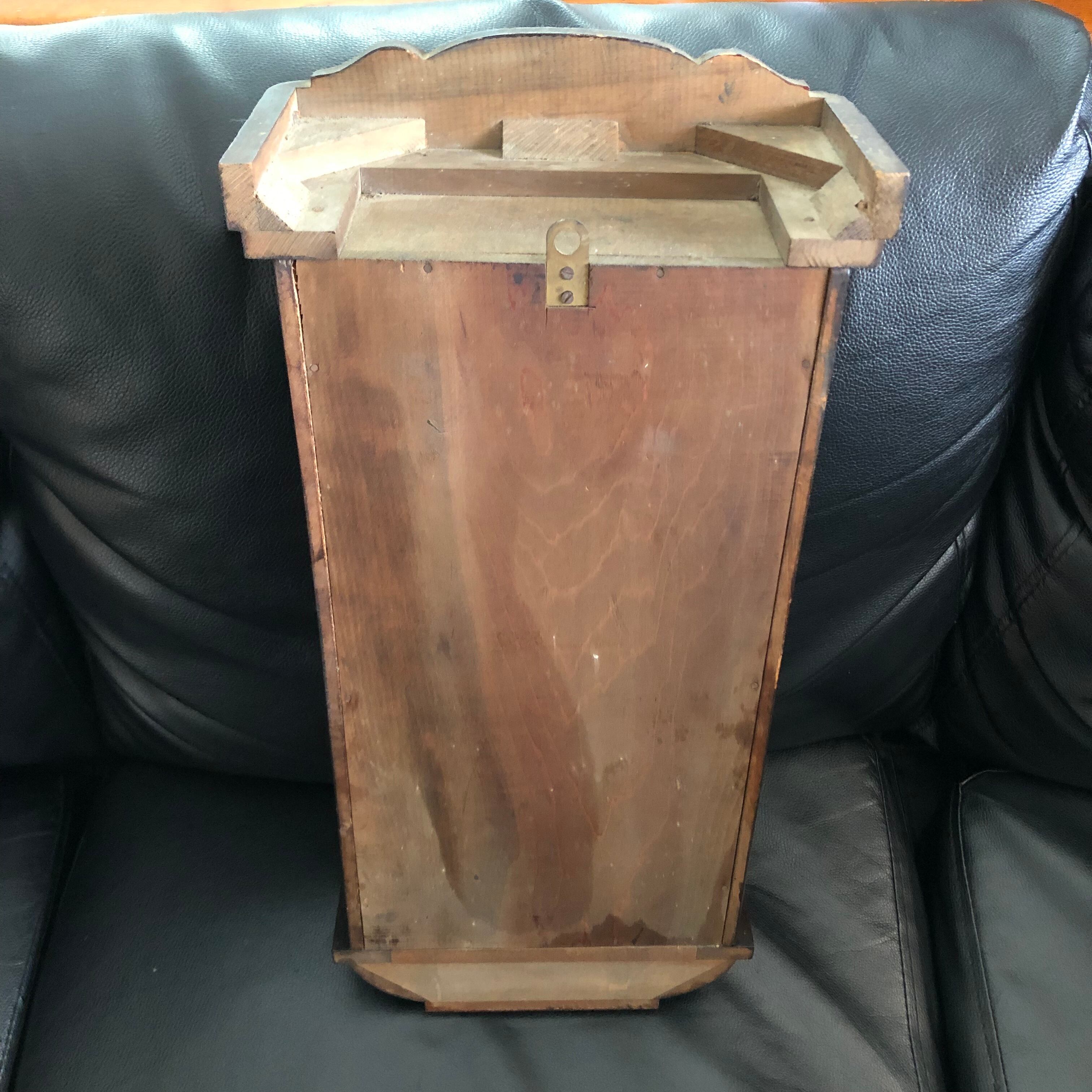 昭和レトロな、落ち着いた焦げ茶色の格調ある趣あるデザインです。昭和30年頃の製造と思われます。小傷はありますが、箱はチークオイルでメンテナンス済みで目立たなくしています。
