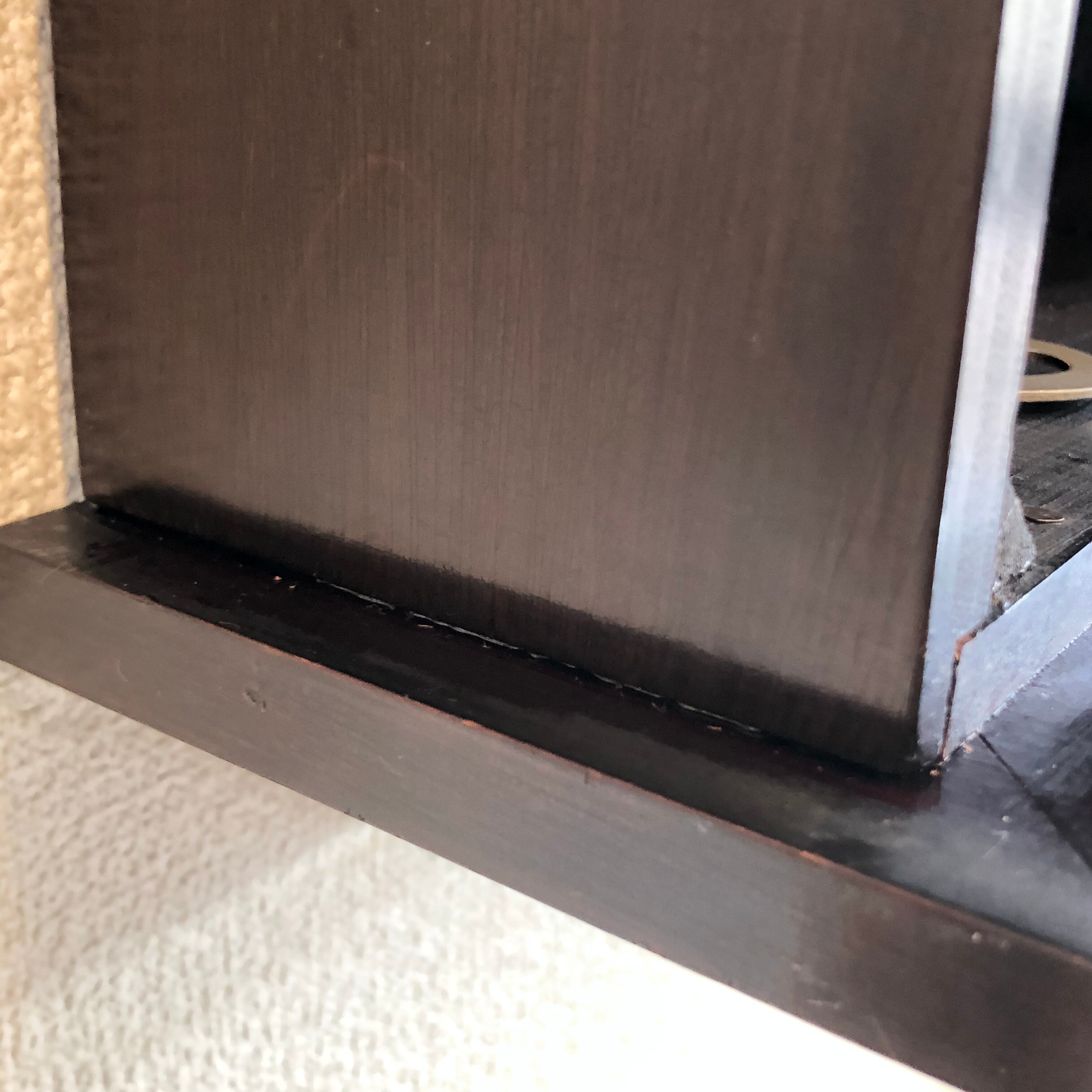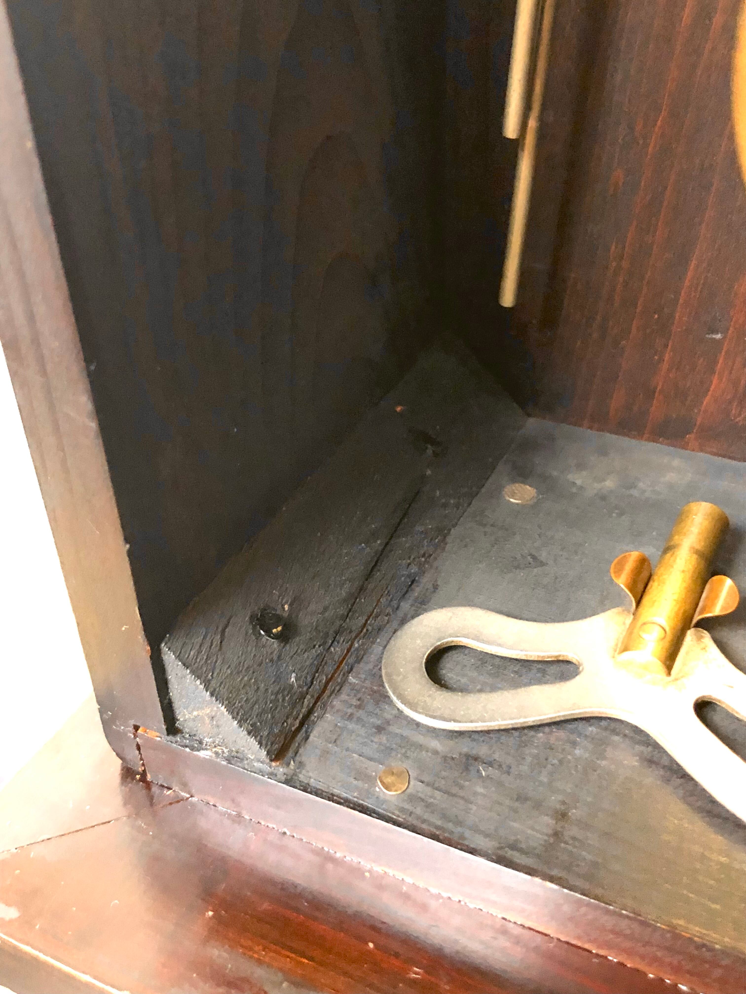 箱には、経年による収縮や寄れでがありましたので、釘打ちして補正しました。その他、擦り傷や打ち傷、汚れなど時代相応の劣化が見られますが、チークオイルでメンテナンスして目立たなくしています。稼働する骨董品とお考え下さい。