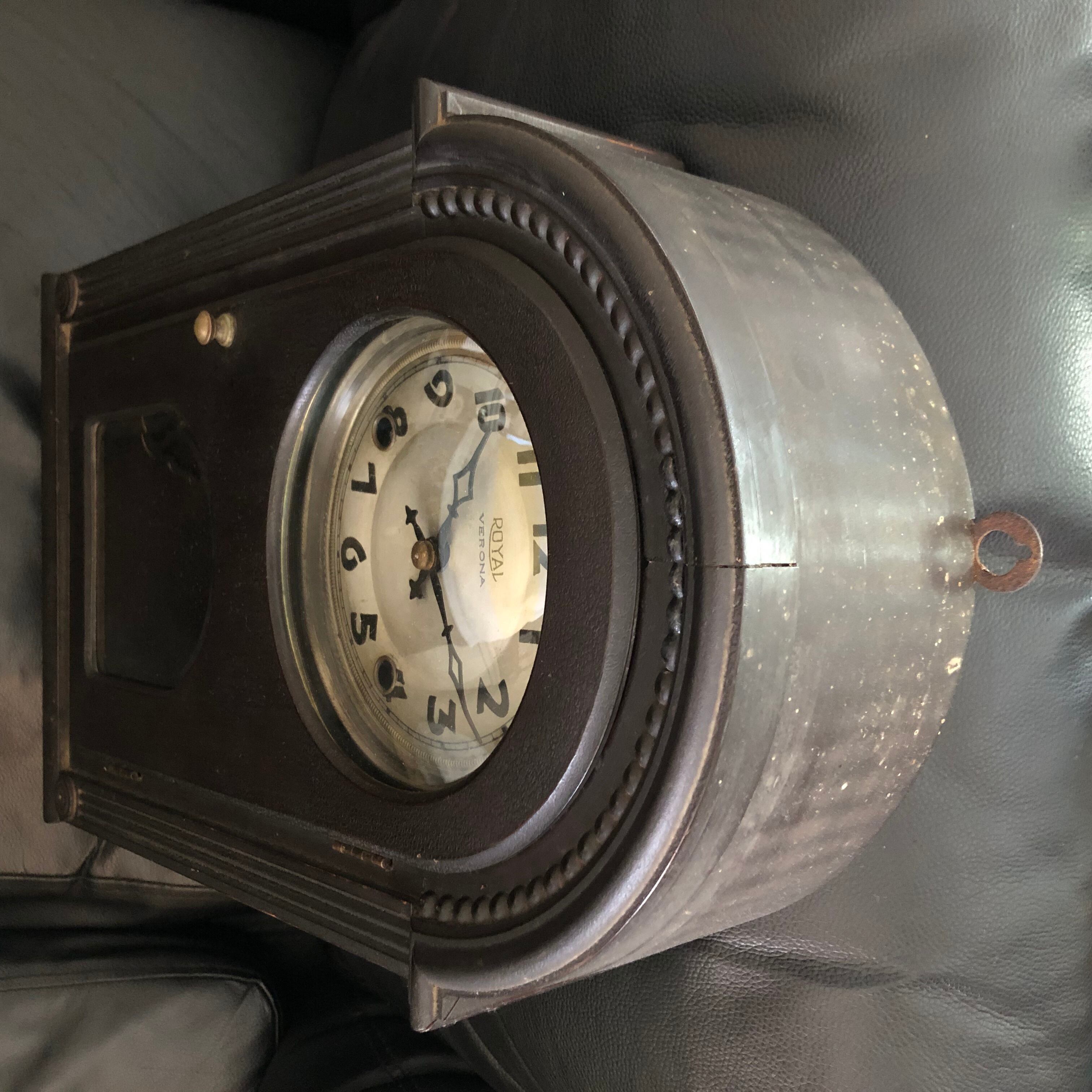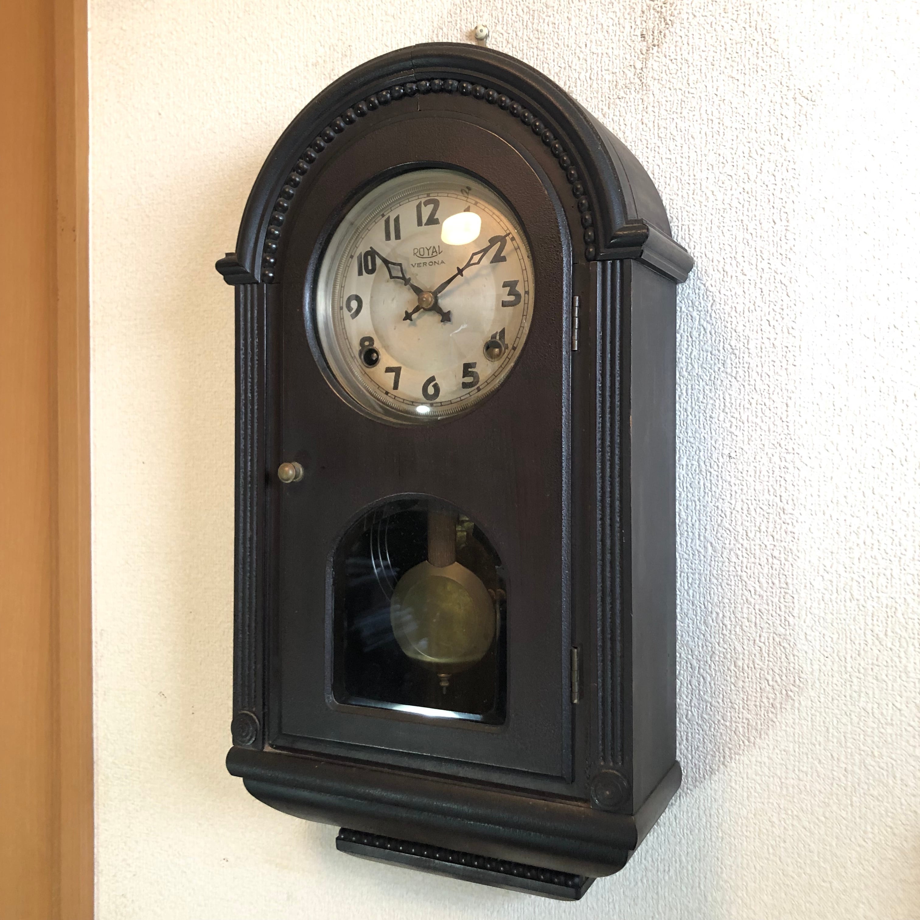 昭和初期 ローヤル時計 アールデコ頭丸レトロモダン掛時計 オーバーホール済稼働品です。