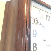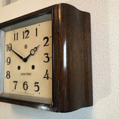 横長の長方形のデザインは、クオーツでは珍しくありませんが、機械式掛時計の稼働品では希少です。愛知時計のモダンで洒落たデザインのボンボン時計です。この機会にぜひ。
