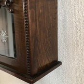 この時計は、戦後昭和30年頃の製造と思われます。緑がかった茶色の杢目の美しさを生かした落ち着いた風合いのオーソドックスな宮型時計です。