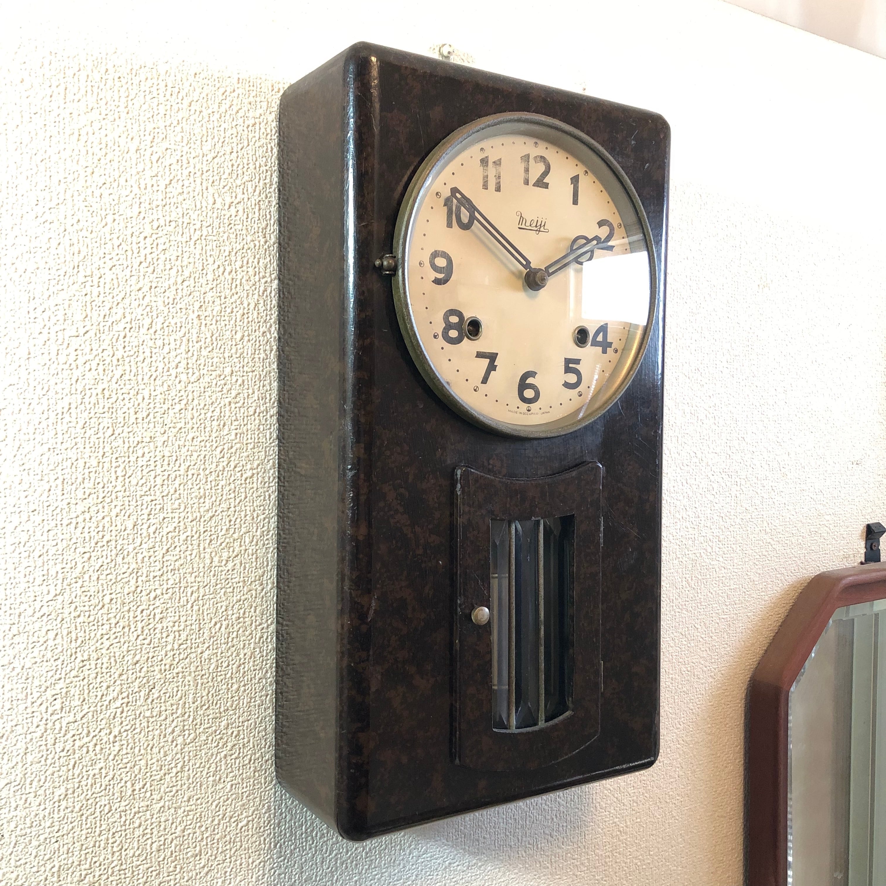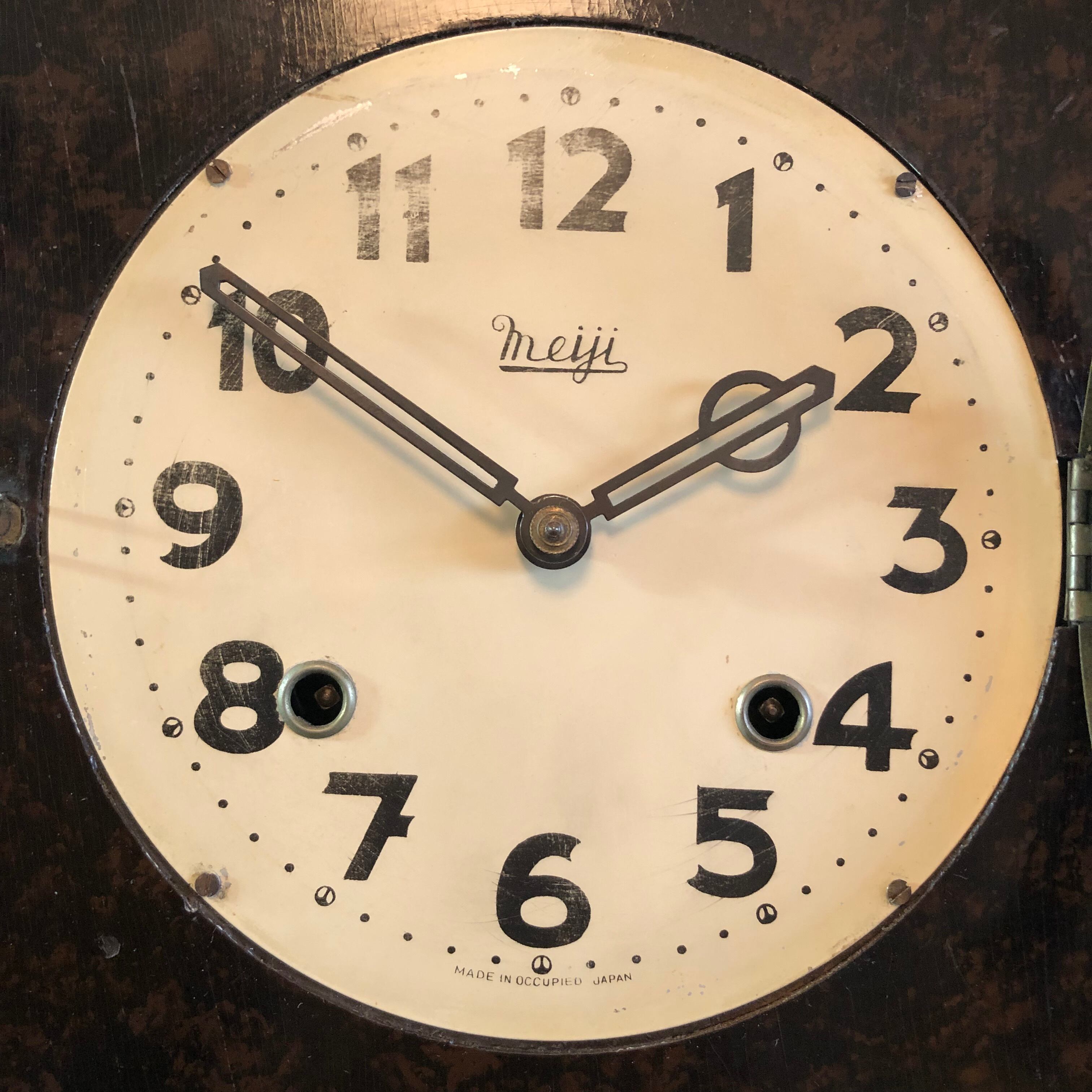 明治時計製 オキュパイドジャパン 角型シンプルモダン機械式掛時計 オーバーホール済 稼働品