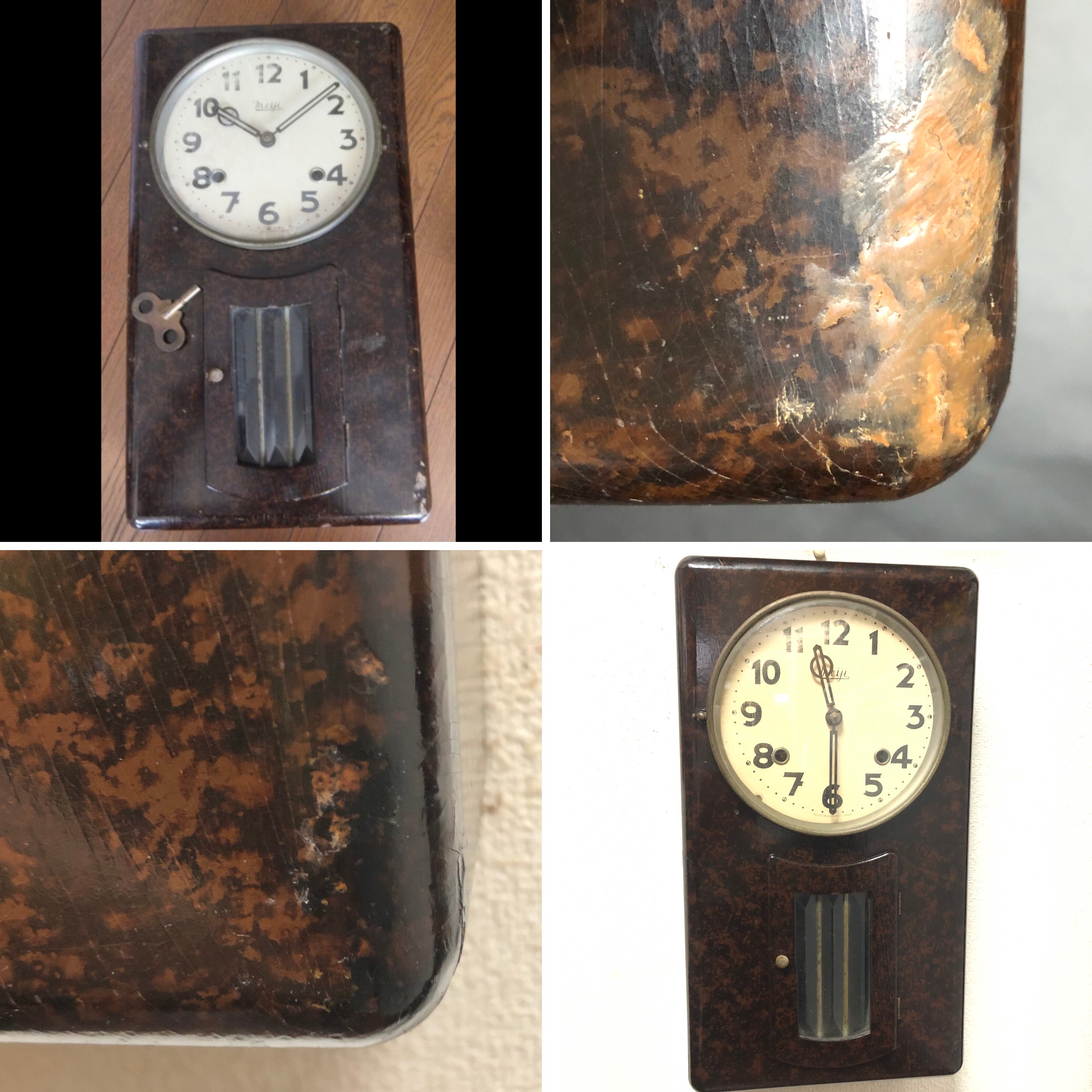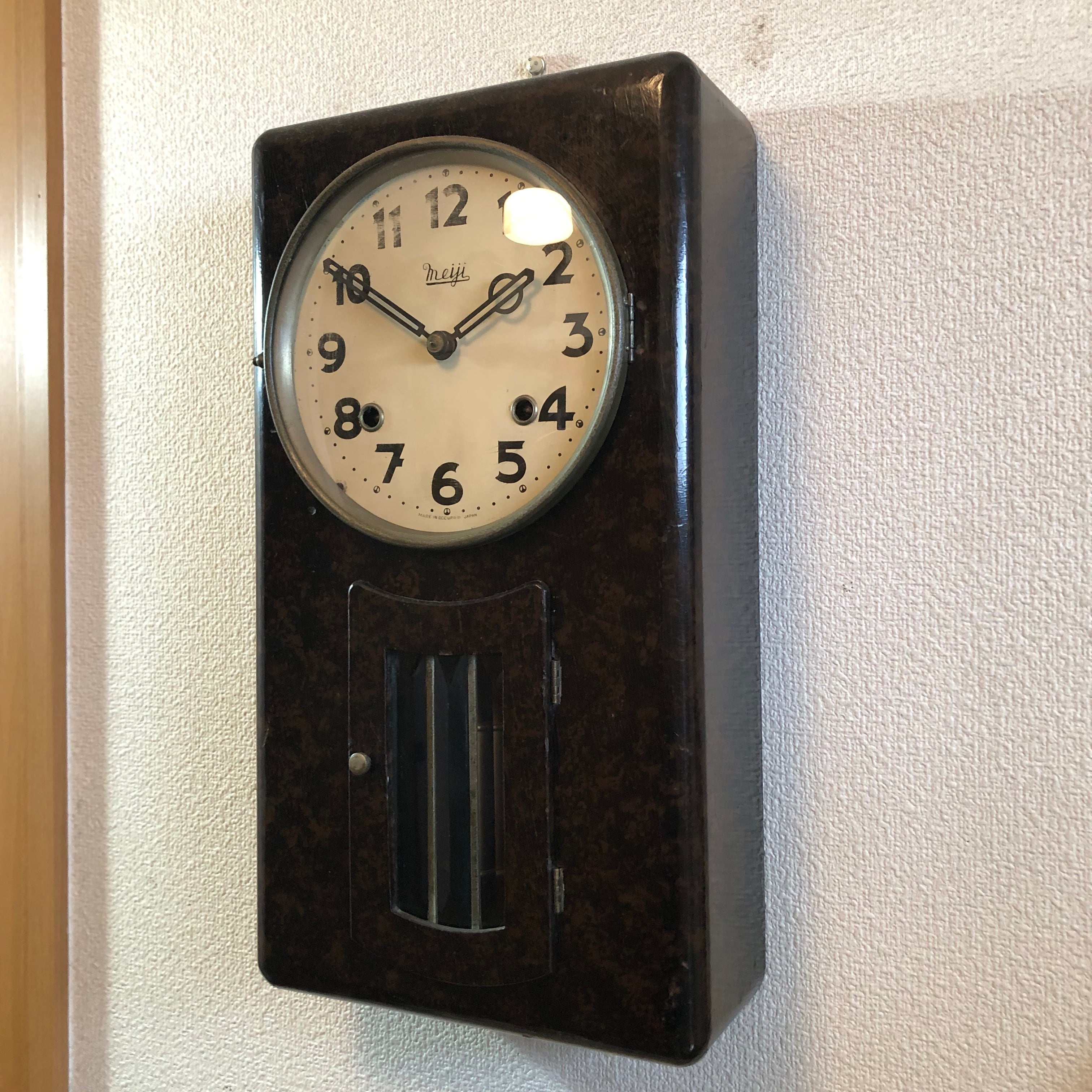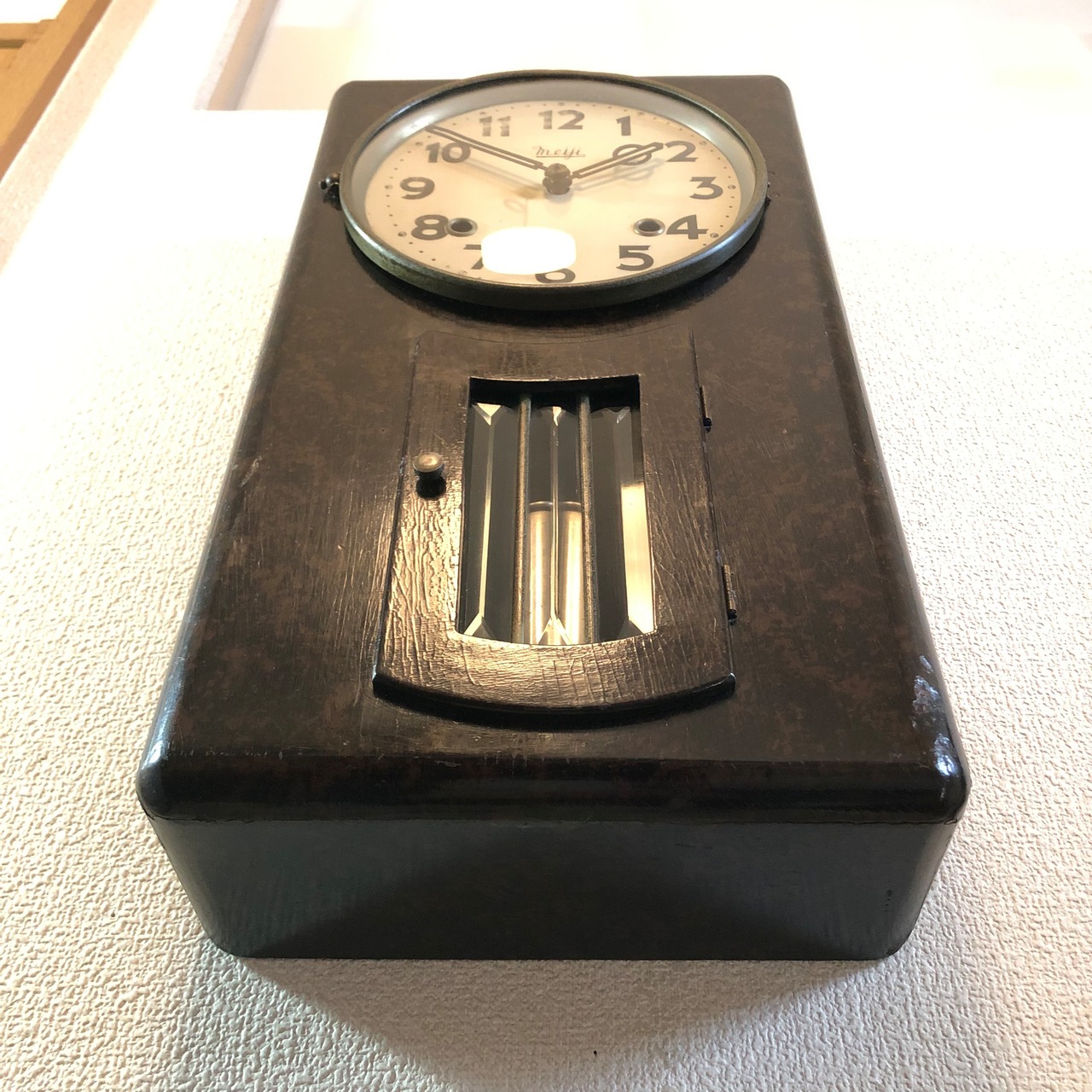 明治時計製 オキュパイドジャパン 角型シンプルモダン機械式掛時計 オーバーホール済 稼働品です。